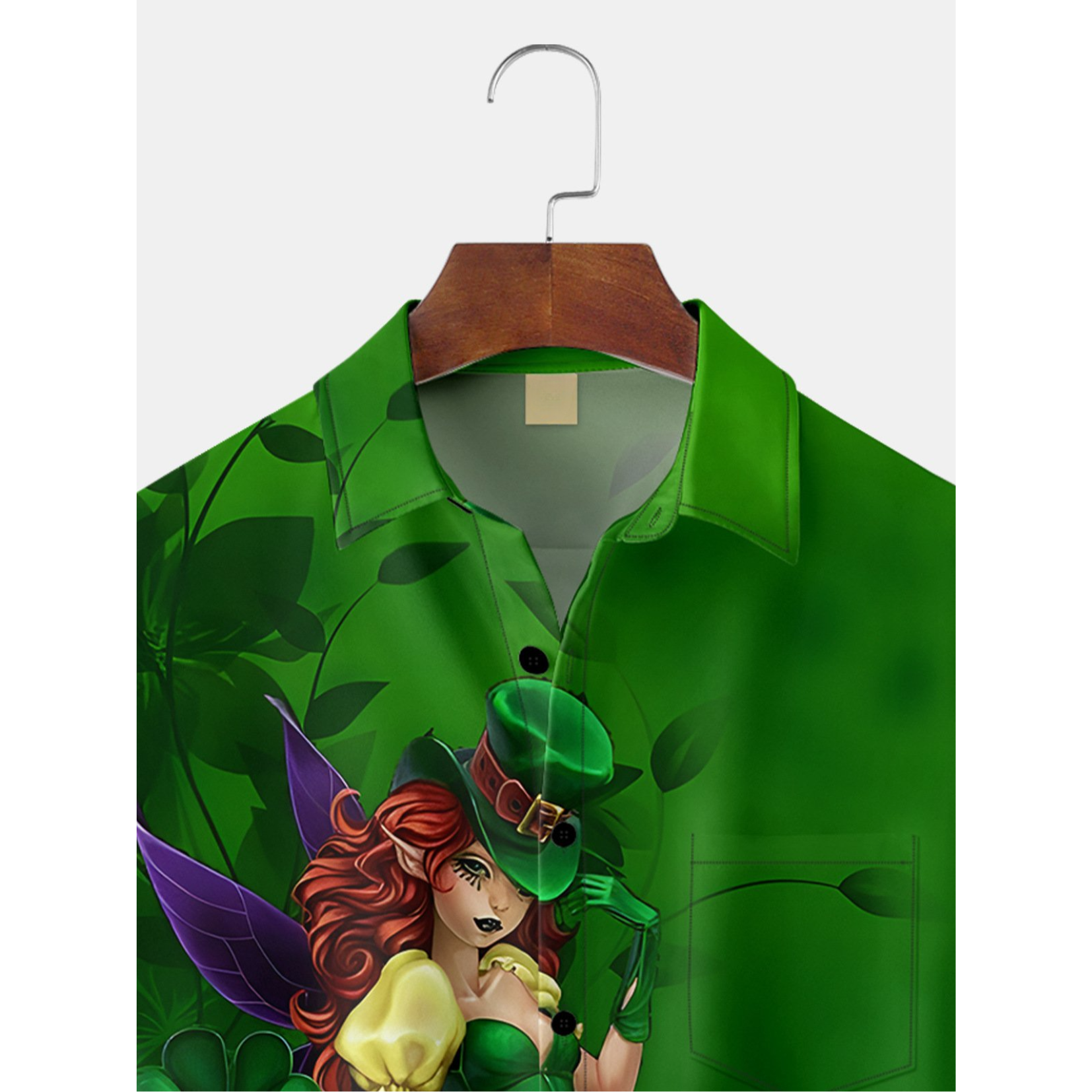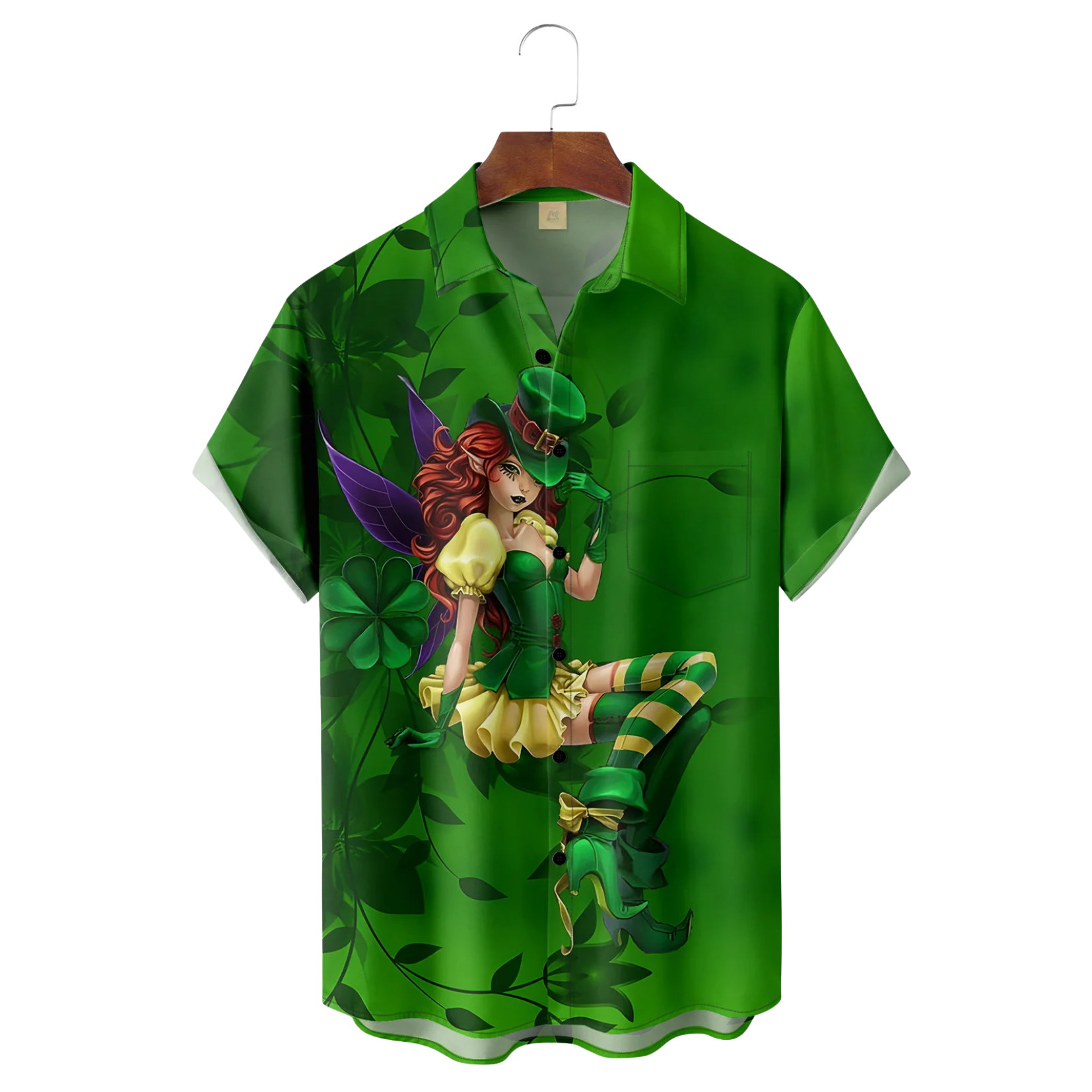 Green St. Patrick's Day Lucky Clover Beauty Hawaiian Golf Shirt, Men's Golf Shirt, Tropical Vibe Golf Polo Shirts
