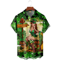 Green St. Patrick's Day Lucky Clover Gold Coins Beauty Hawaiian Golf Shirt, Tropical Vibe Men's Golf Shirt