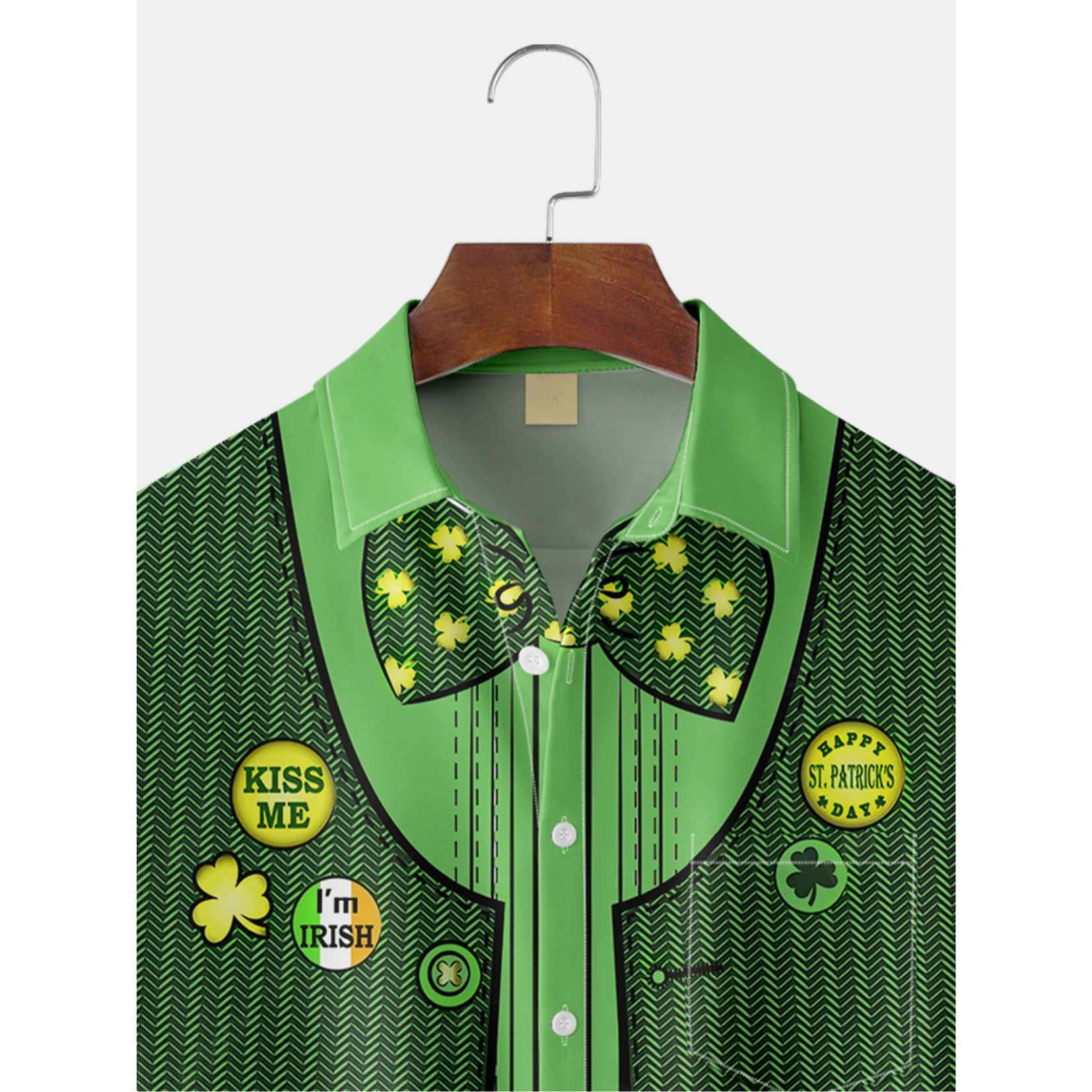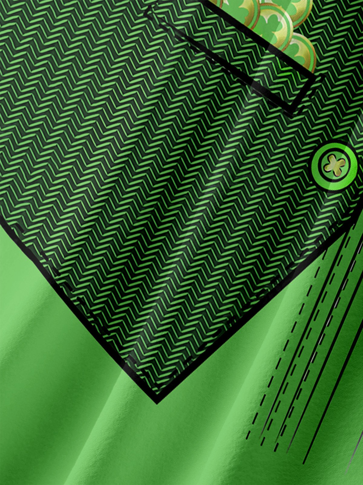 Green St. Patrick's Day Lucky Clover Gold Coins Hawaiian Golf Shirt, Tropical Vibe Men's Golf Shirt