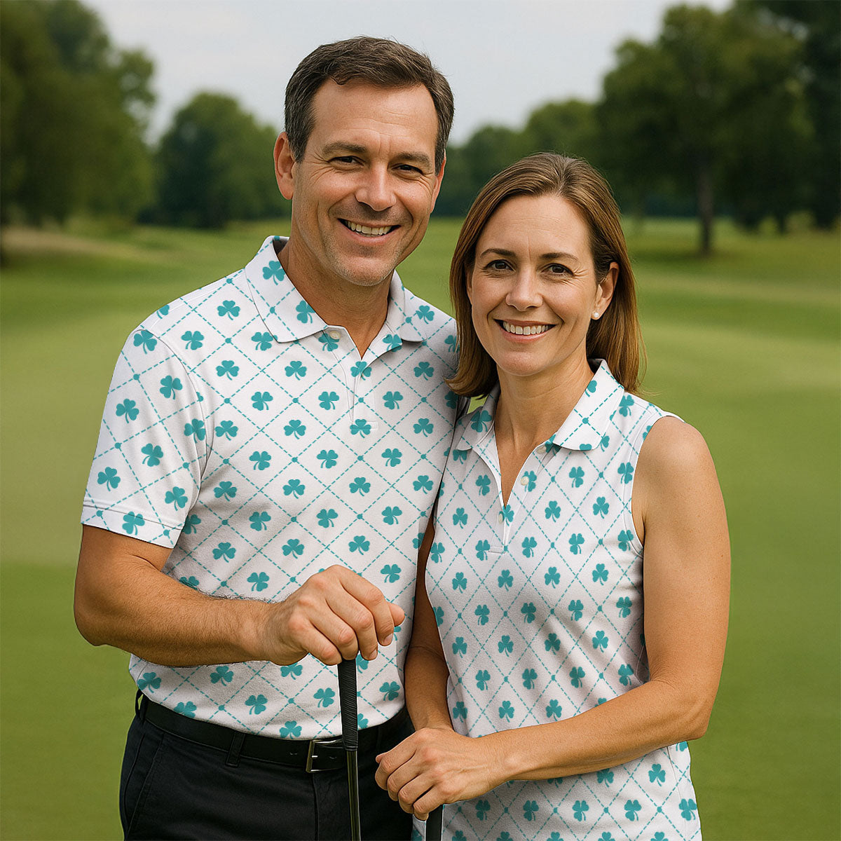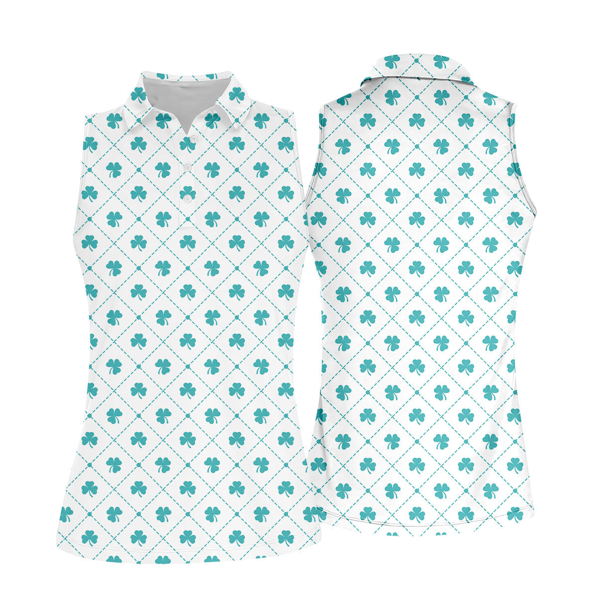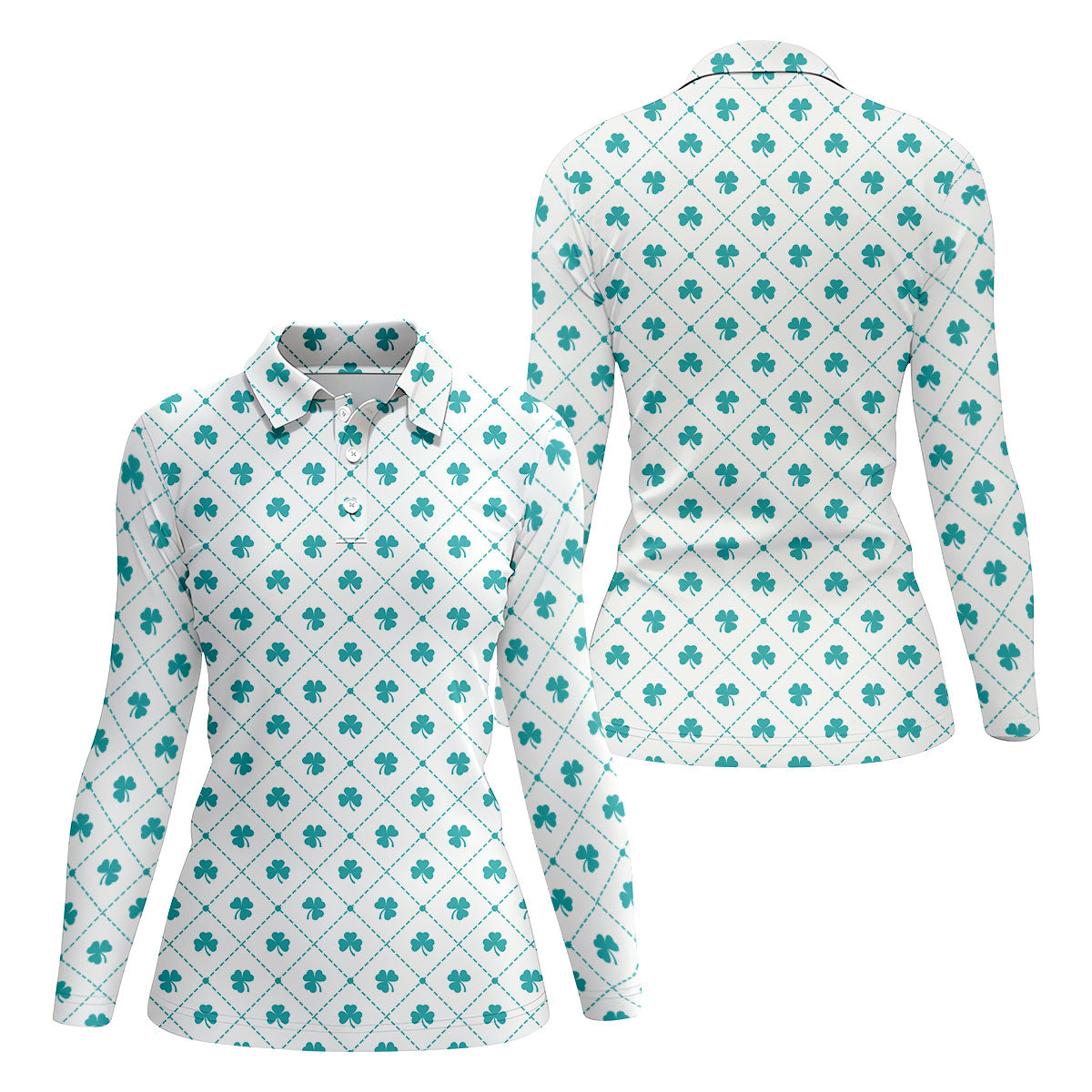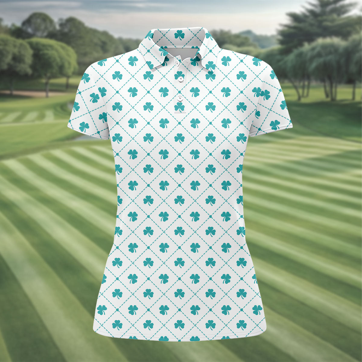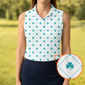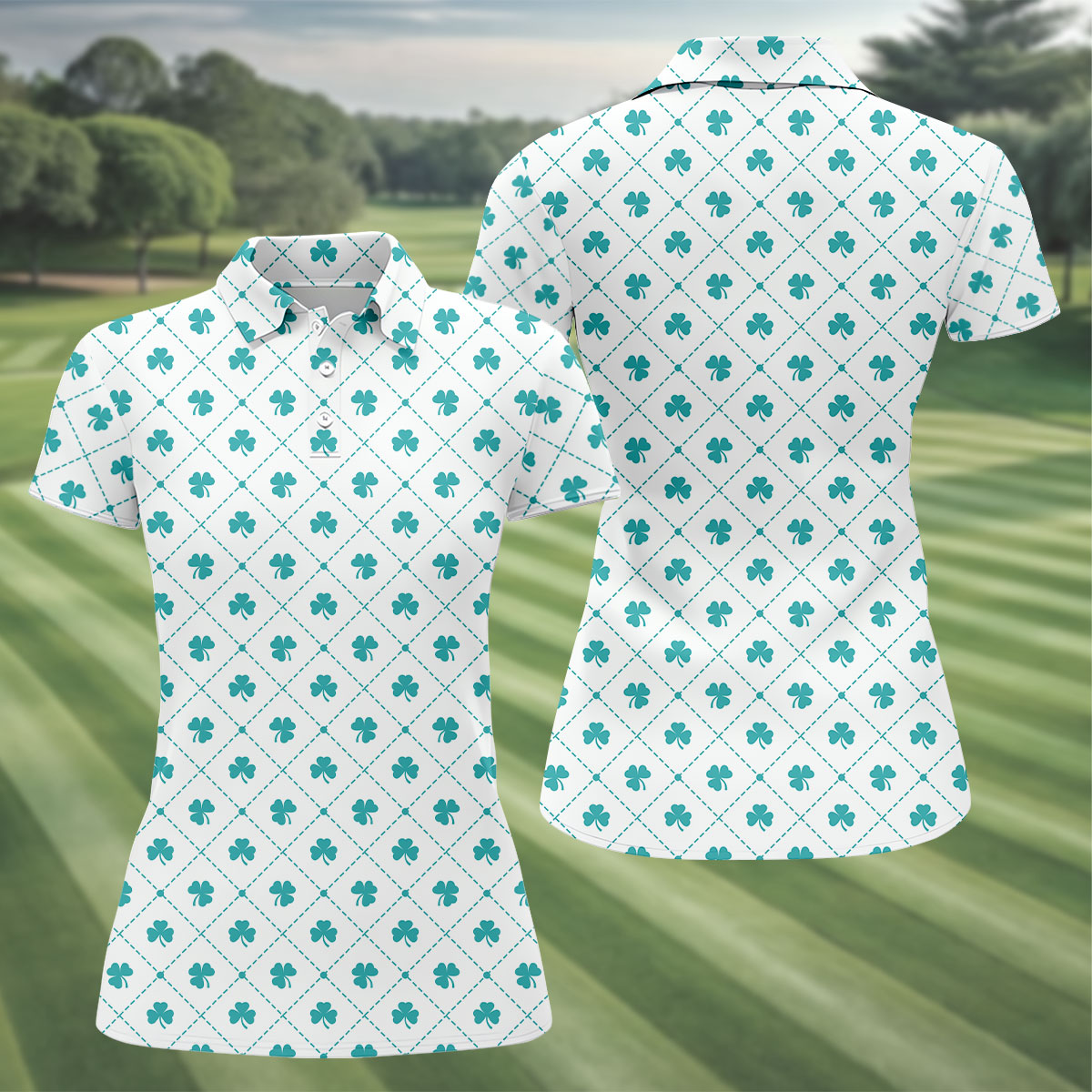 Grid Pattern Shamrock Golf Shirt, St Patrick's Day Women's Golf Tops, Ladies Golf Polos, Golf Shirt For Women