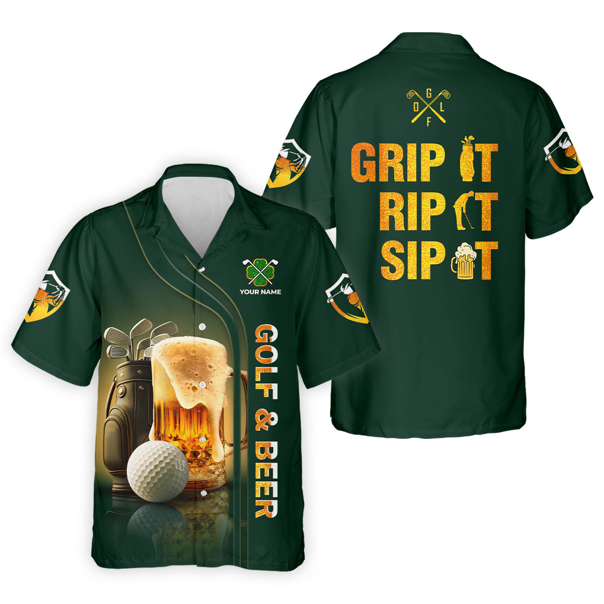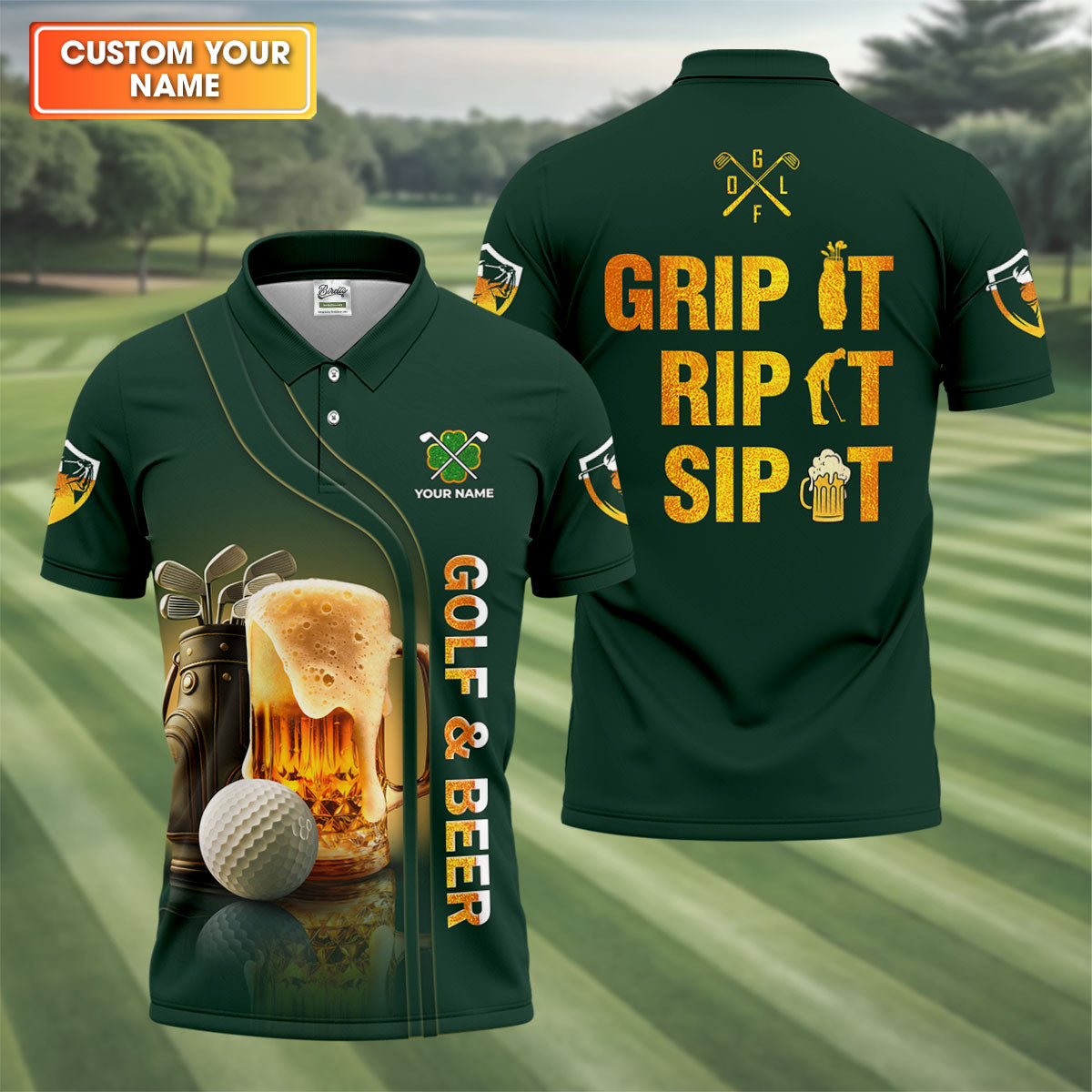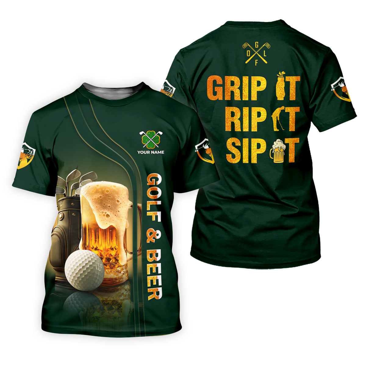 Grip It Rip It Sip It Golf And Beer St Patrick's Day Green Golf Shirts For Men, Golf Gift For Men