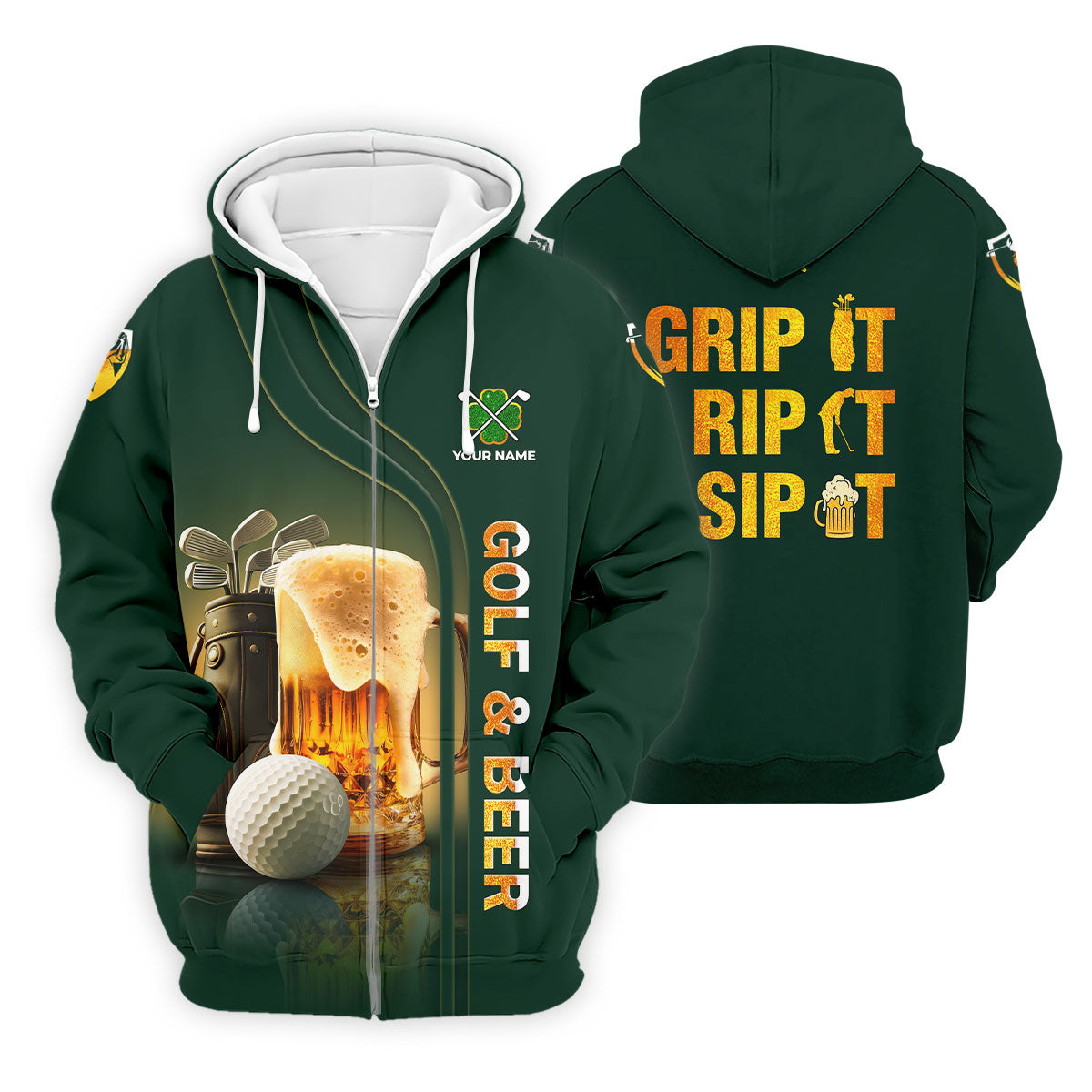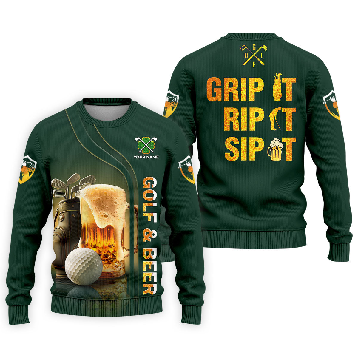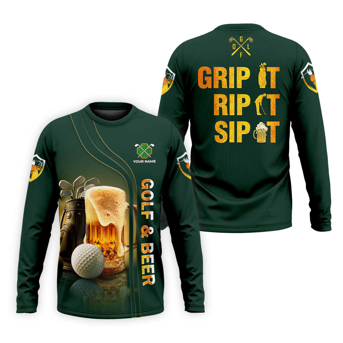 Grip It Rip It Sip It Golf And Beer St Patrick's Day Green Golf Shirts For Men, Golf Gift For Men