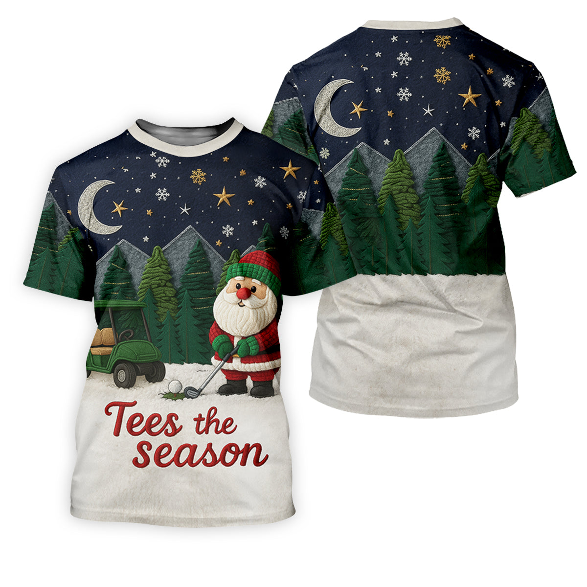 Santa Golfing Tees The Season Night Theme Golf Tops For Men, Christmas Golf Shirt, Polo Shirts For Men