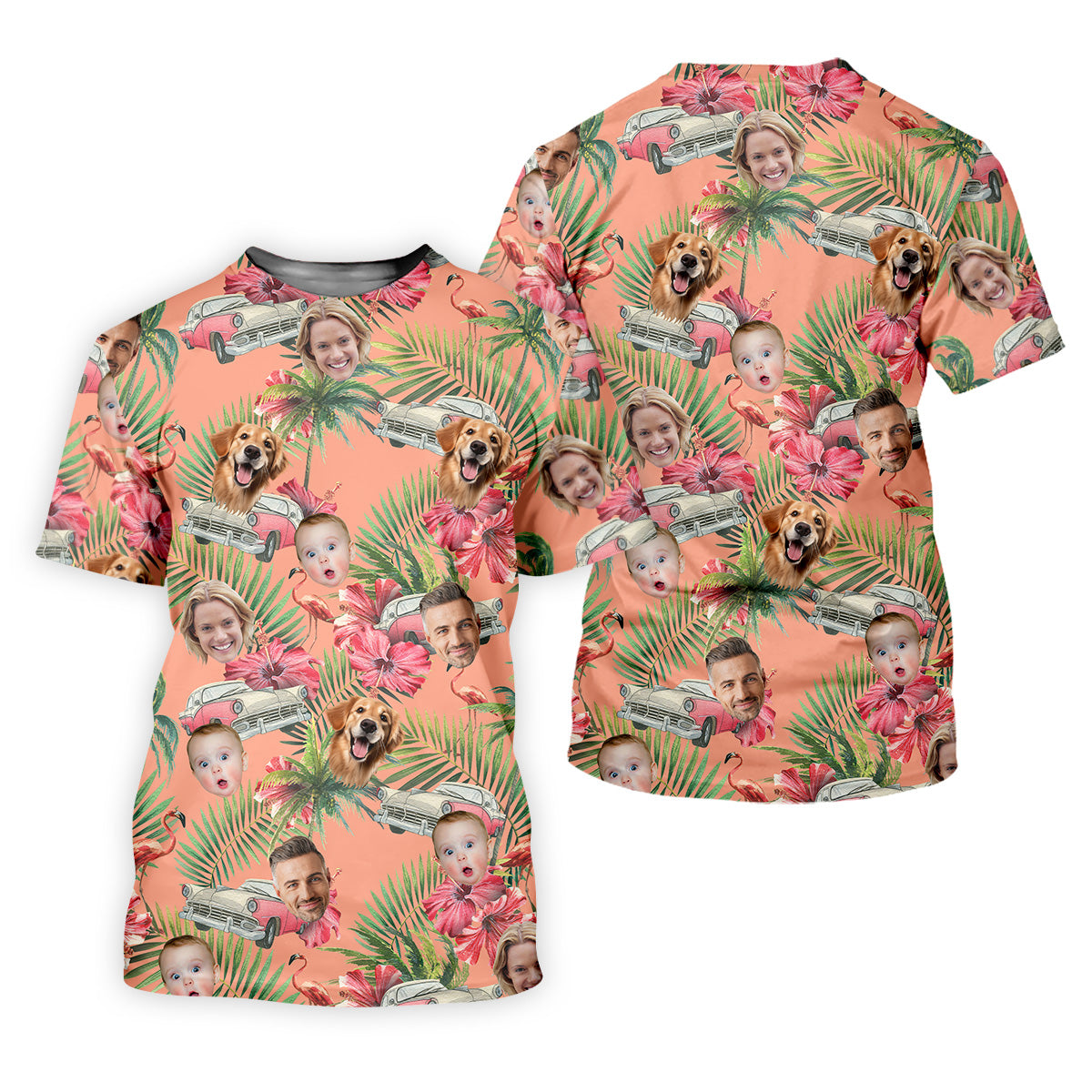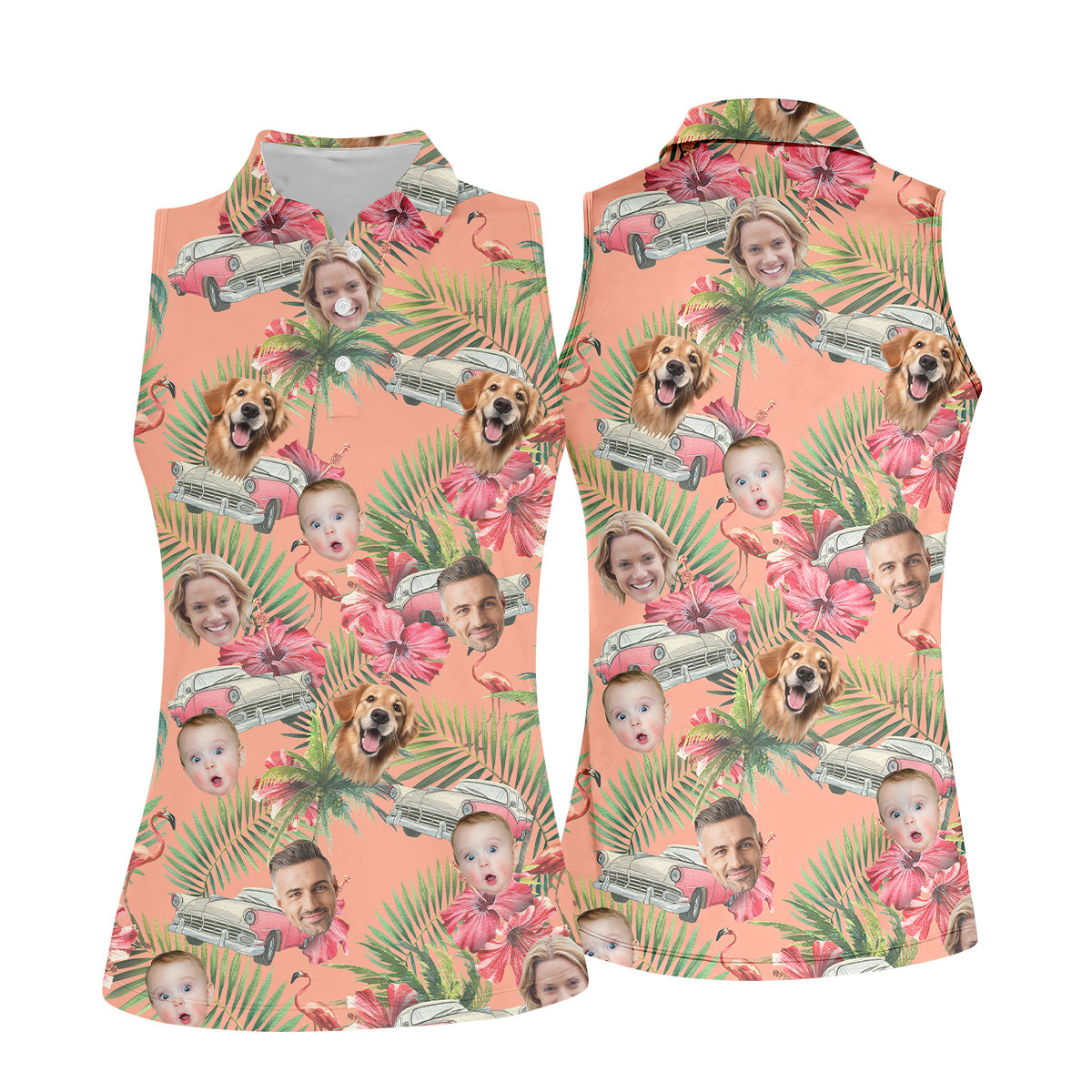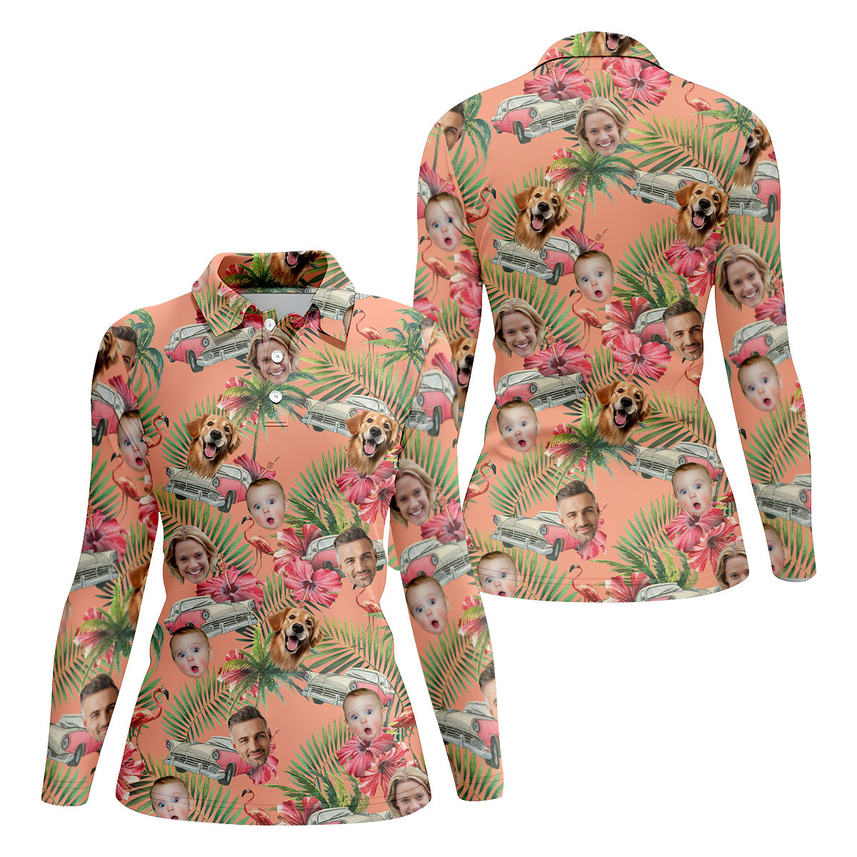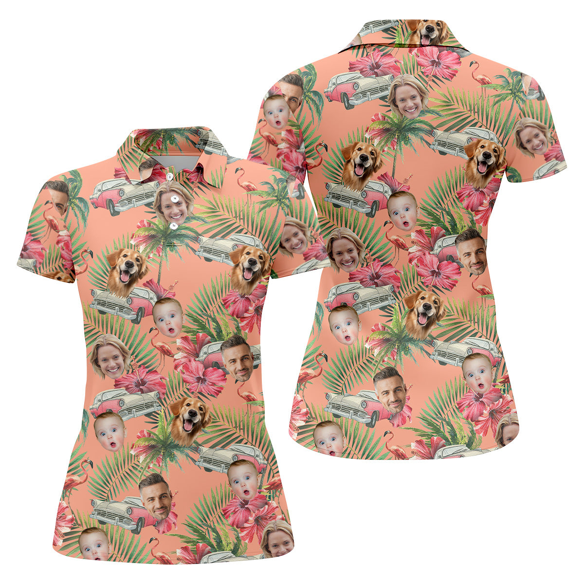 Hibiscus Shirt, Palm Tree Shirt, Pink Hawaiian Tops For Women, Custom Face Shirt, Ladies Golf Shirts