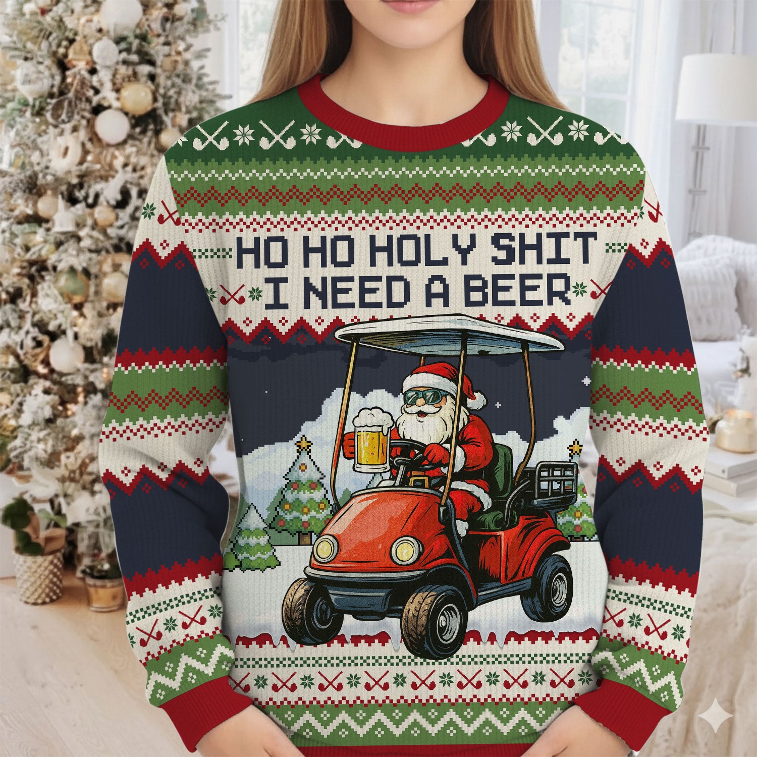 Ho Ho Ho I Need A Beer Christmas Ugly Sweater, Golf Ugly Christmas Sweater, Christmas Golf Shirt