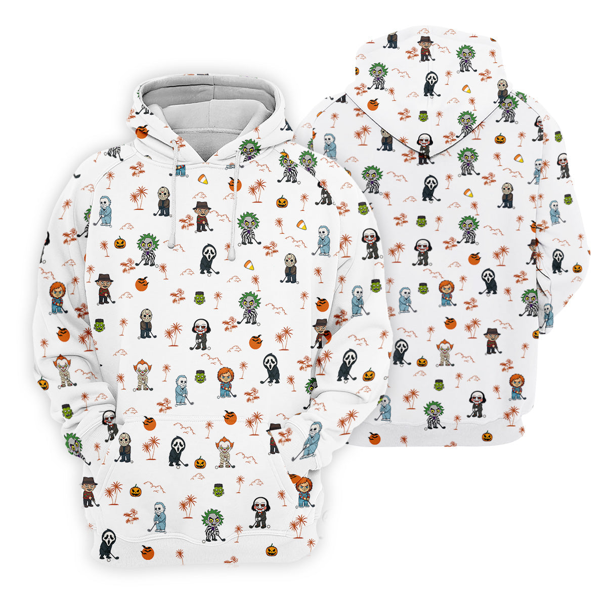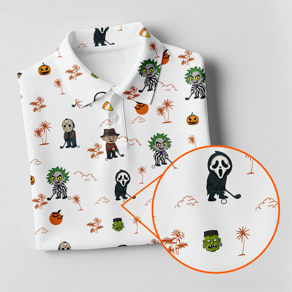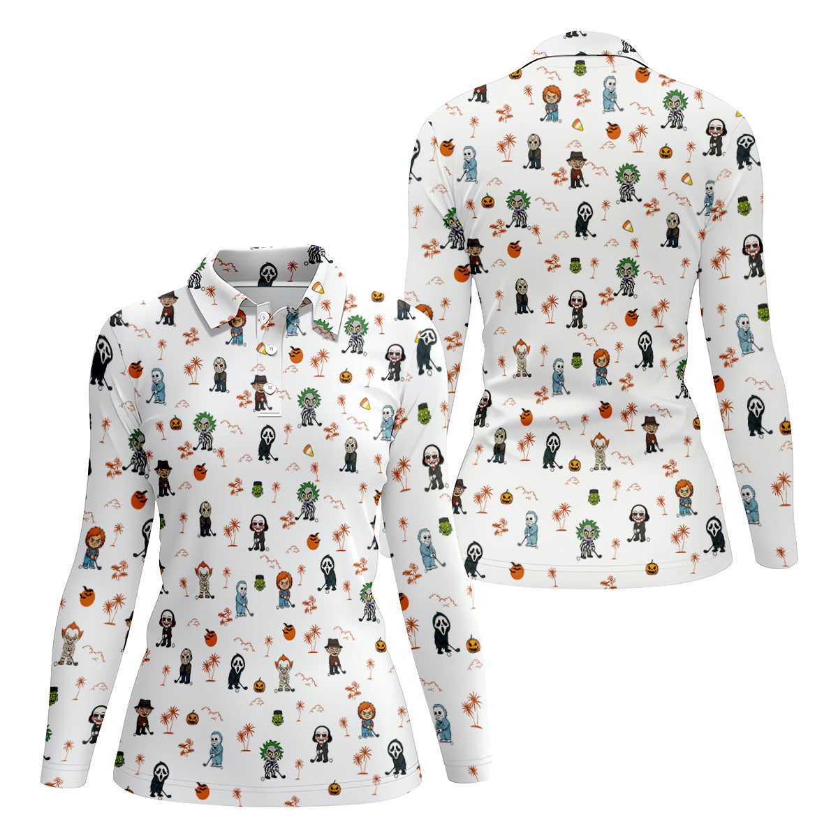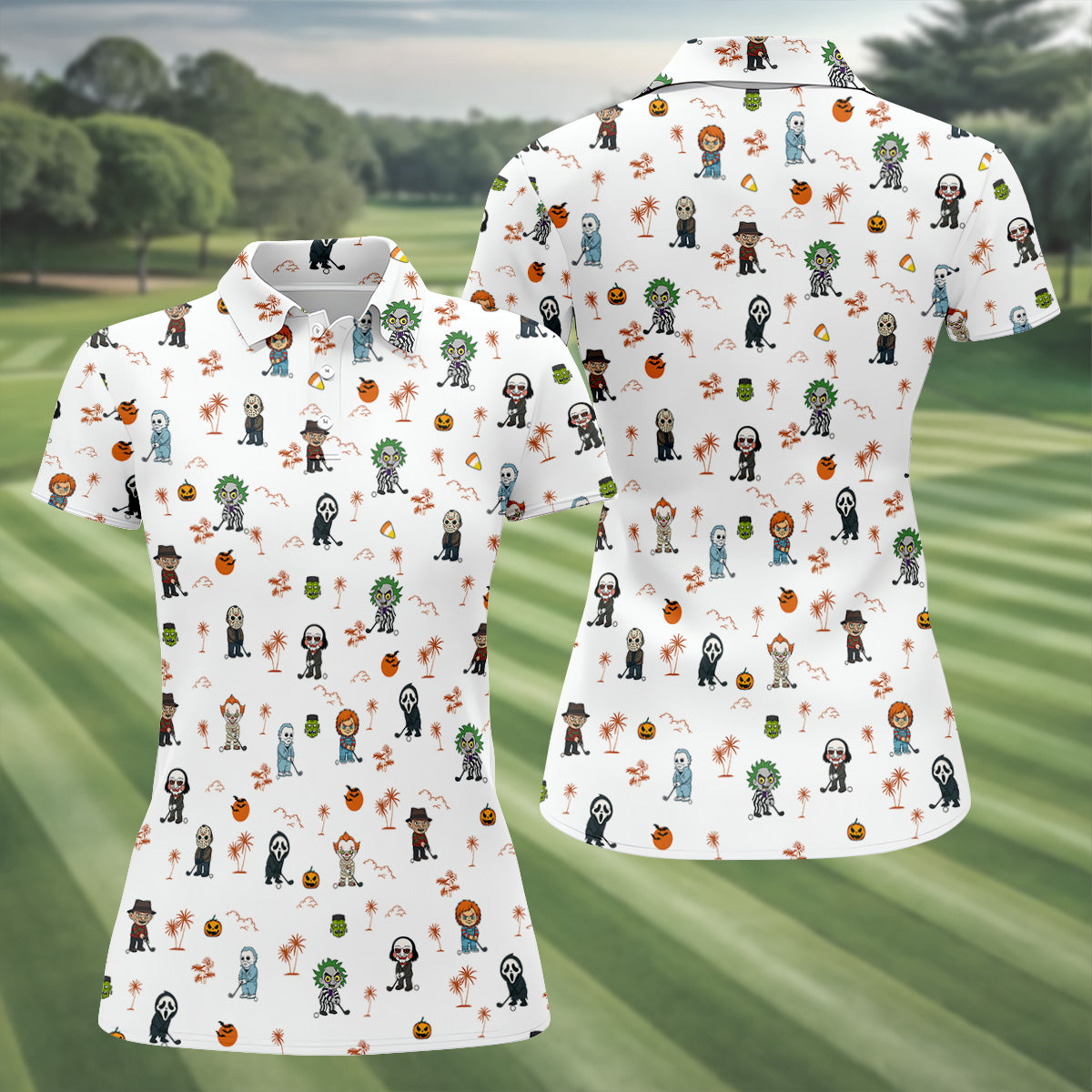 Horror Halloween Character Women's Hawaiian Golf Shirts, Womens Golf Tops, Horror Movie Shirt