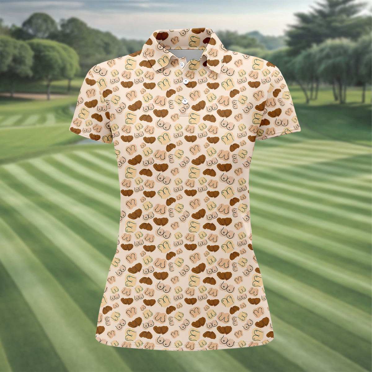 Beige Fun Womens Golf Shirts, Womens Golf Tops, Unique Gift For Golfer, Ladies Golf Polos