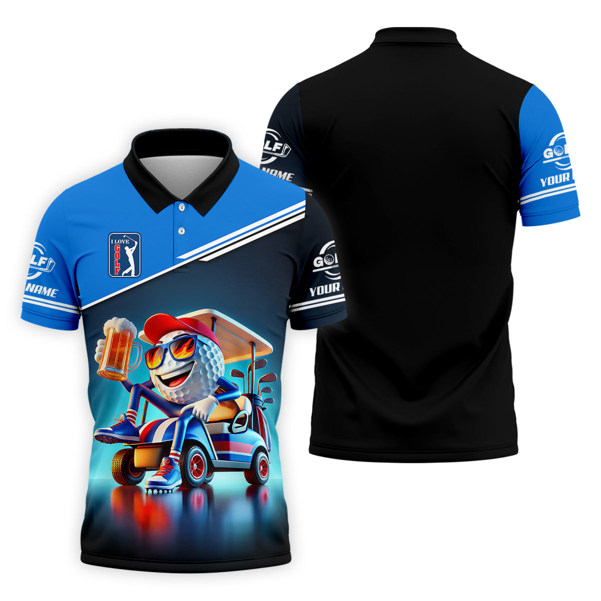 I Love Golf Custom Men's Golf Polo Shirt, Funny Beer Golf Shirt, Dad Golf Gifts