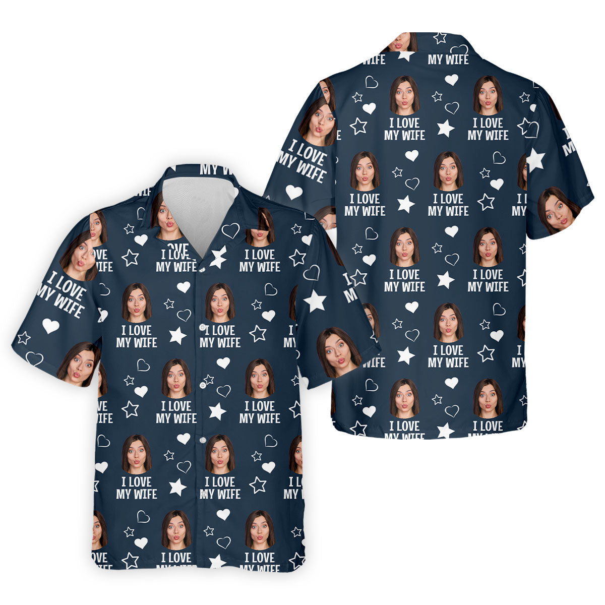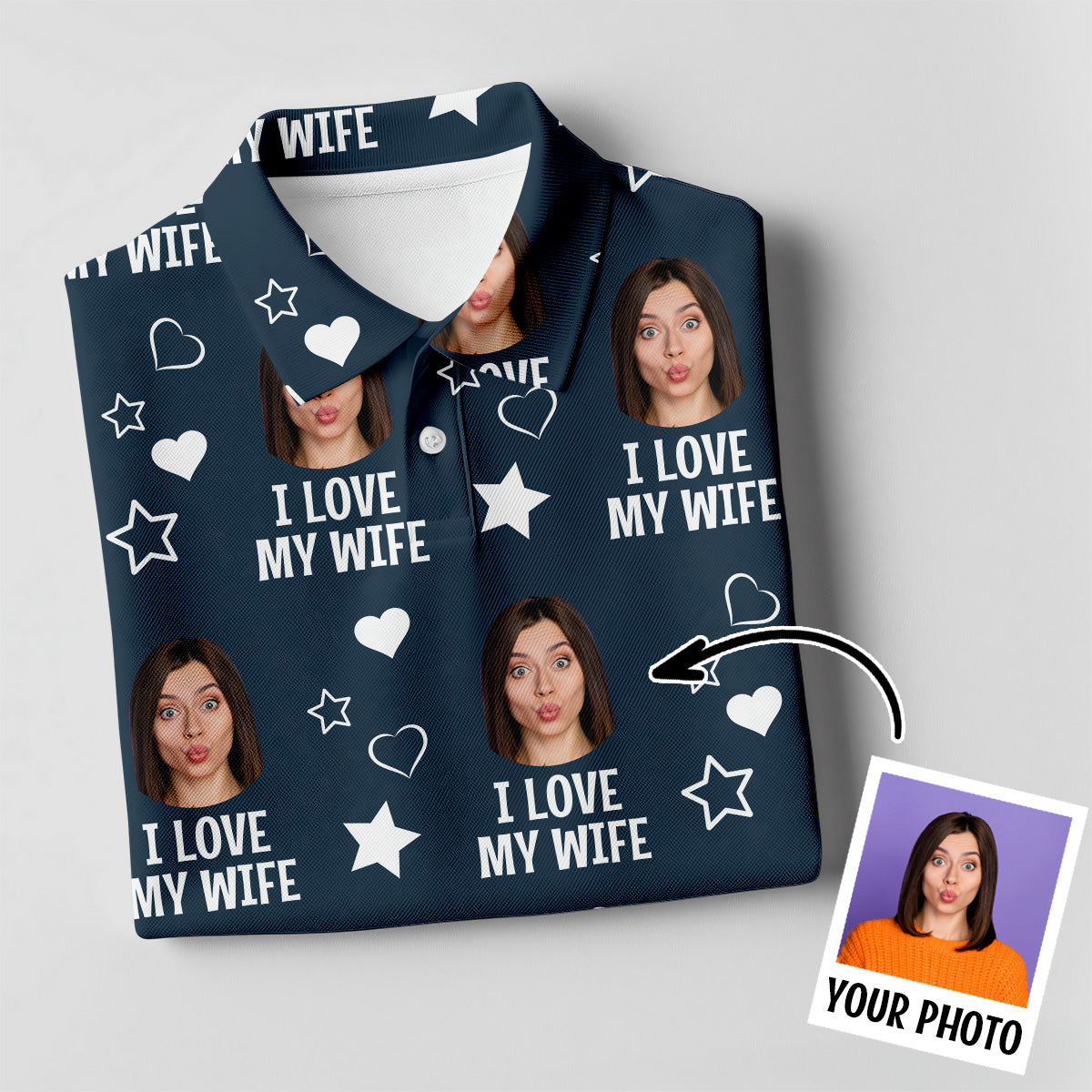 I Love My Wife Custom Face Navy Golf Shirt, Fun Golf Shirts For Men, Valentines Golf Gift, Polo Shirts For Men