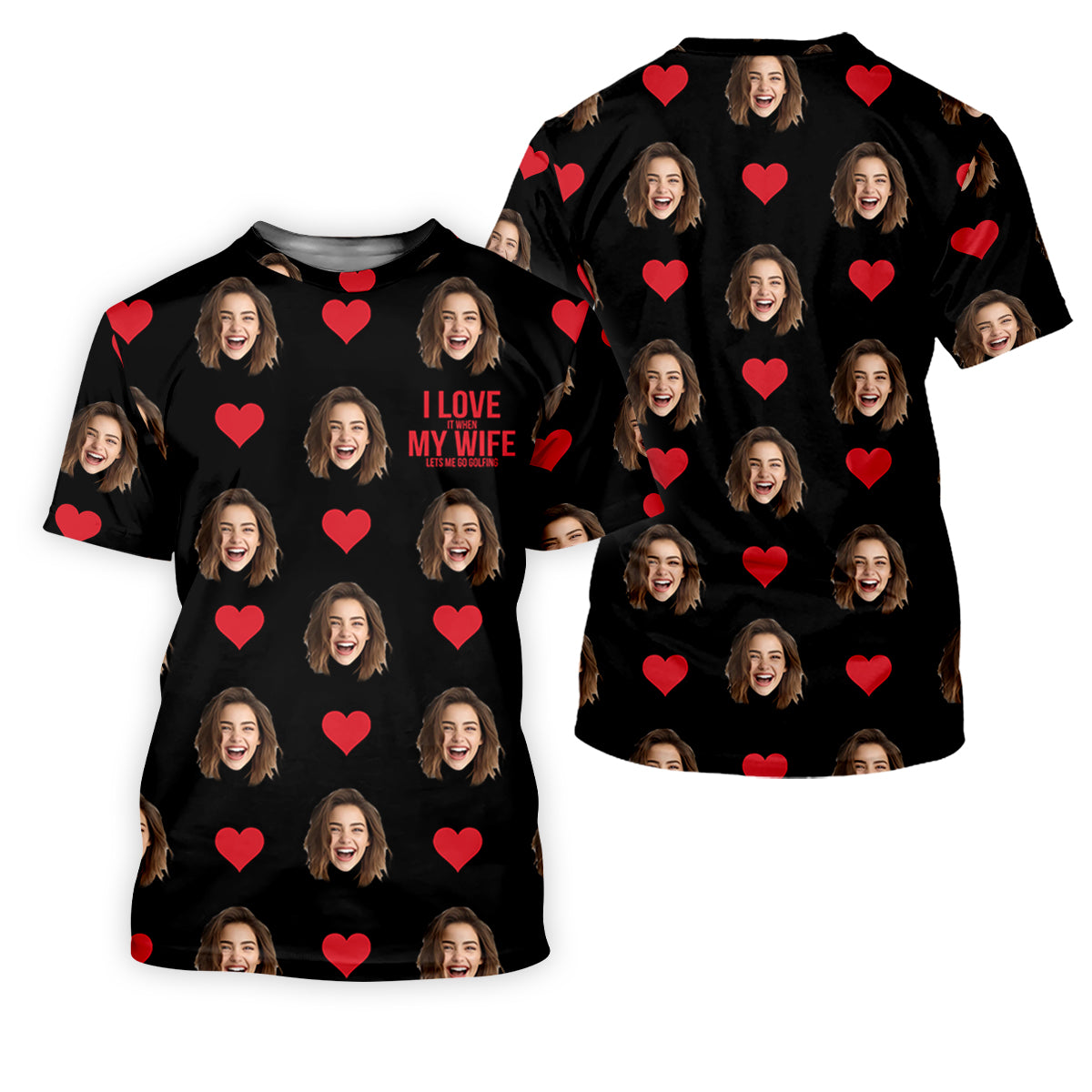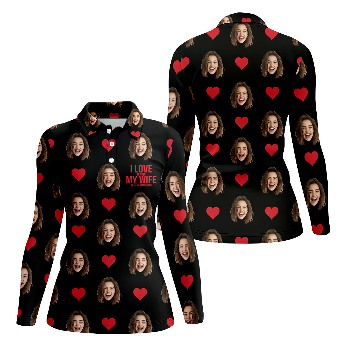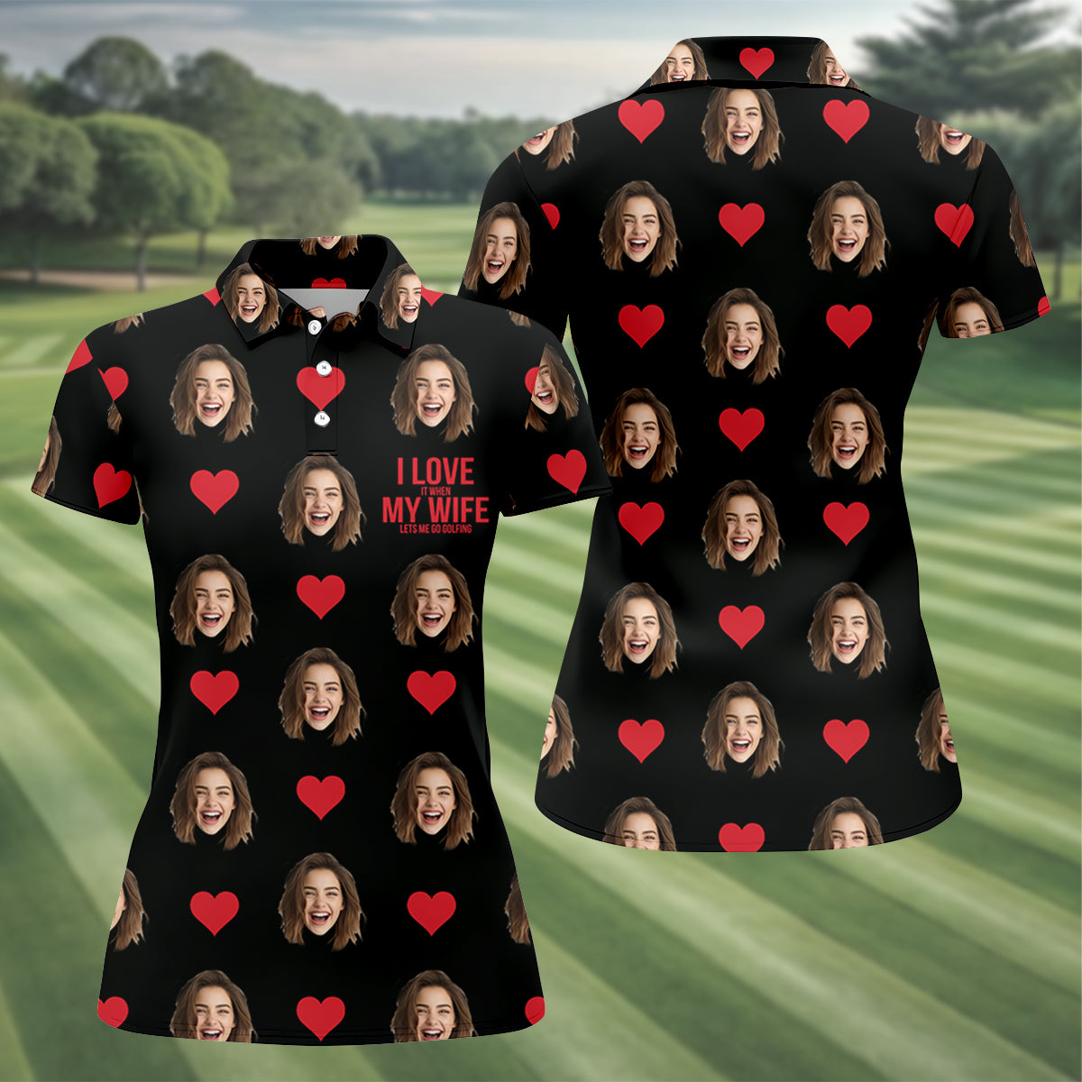 I Love My Wife Custom Photo Black Golf Shirt, Valentines Golf Gift, Women Golf Top, Ladies Golf Polos