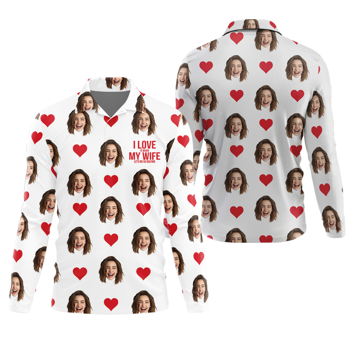 I Love It When My Wife Let Me Golfing Custom Photo White Golf Shirt, Valentines Golf Gift, Fun Golf Shirts For Men