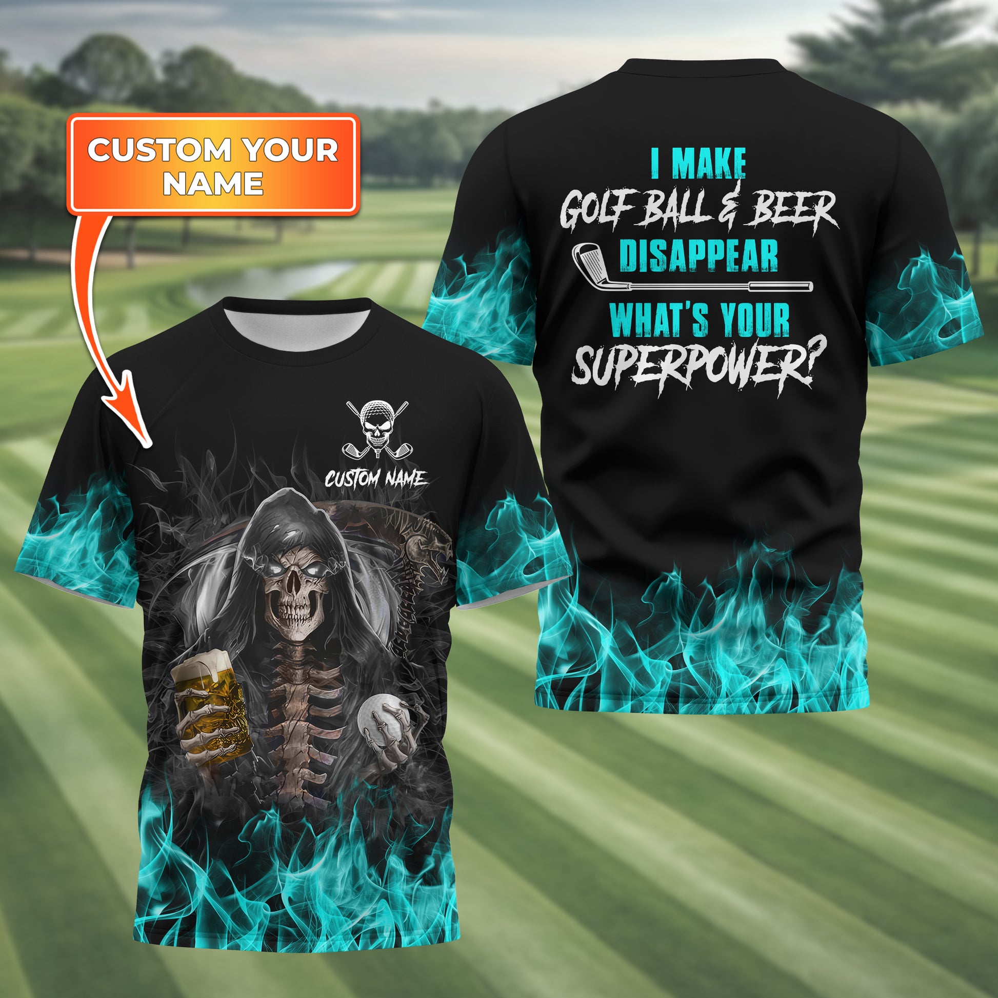 I Make Golf Ball And Beer Disappear Custom Golf Polo Shirt, Skull Golf Shirt, Gift For Golfers