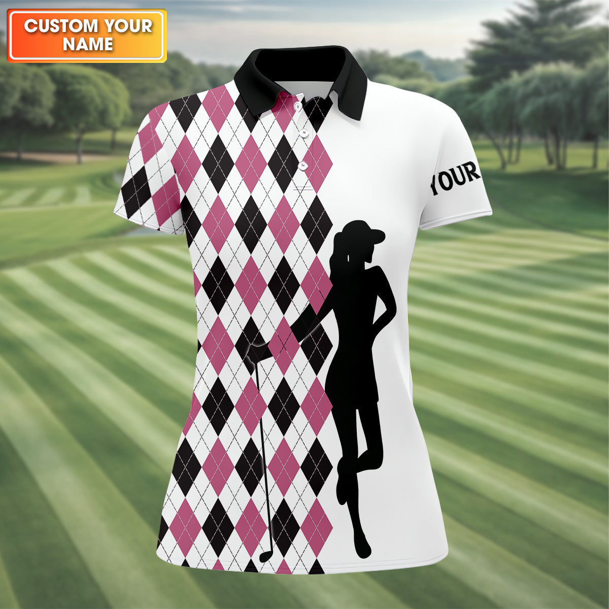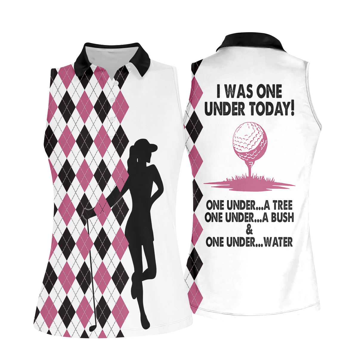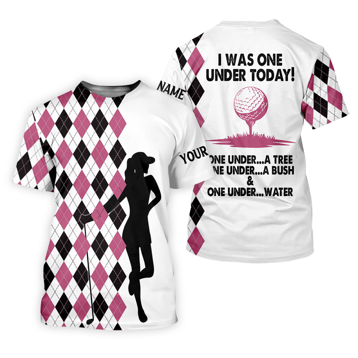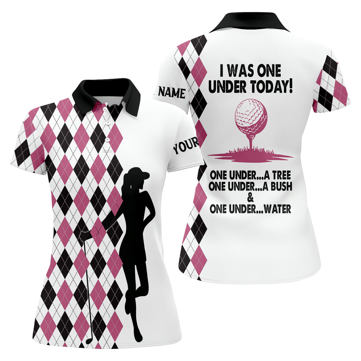 I Was One Under Today Pink Black Argyle Fun Womens Golf Shirts, Ladies Golf Tops, Unique Gift For Golfer