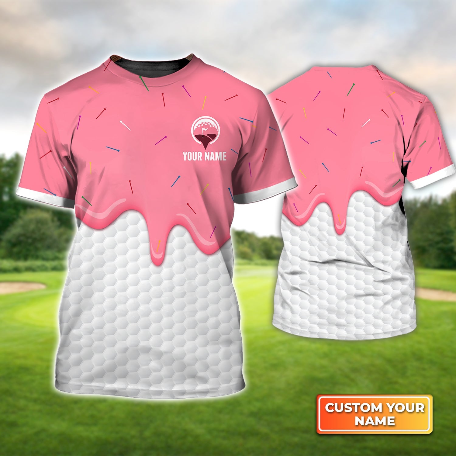 Ice Cream Melting On Golf Ball Cone - Personalized Name 3D Tshirt For Golfer