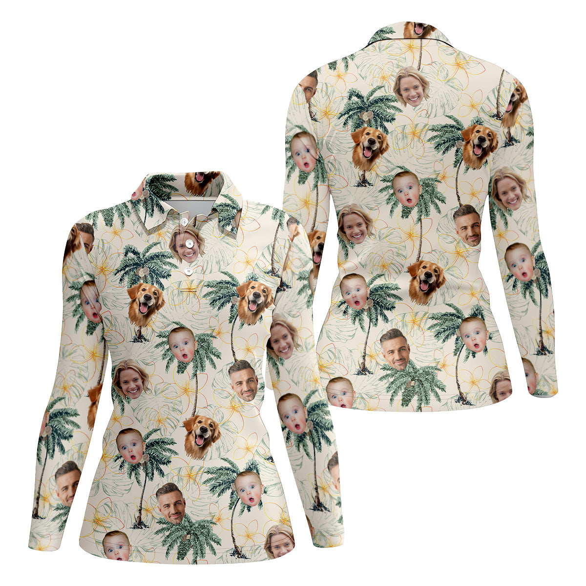 Ladies Palm Tree Shirt, Floral Shirt Women, Hawaiian Golf Shirts, Custom Face Shirt, Ladies Golf Tops