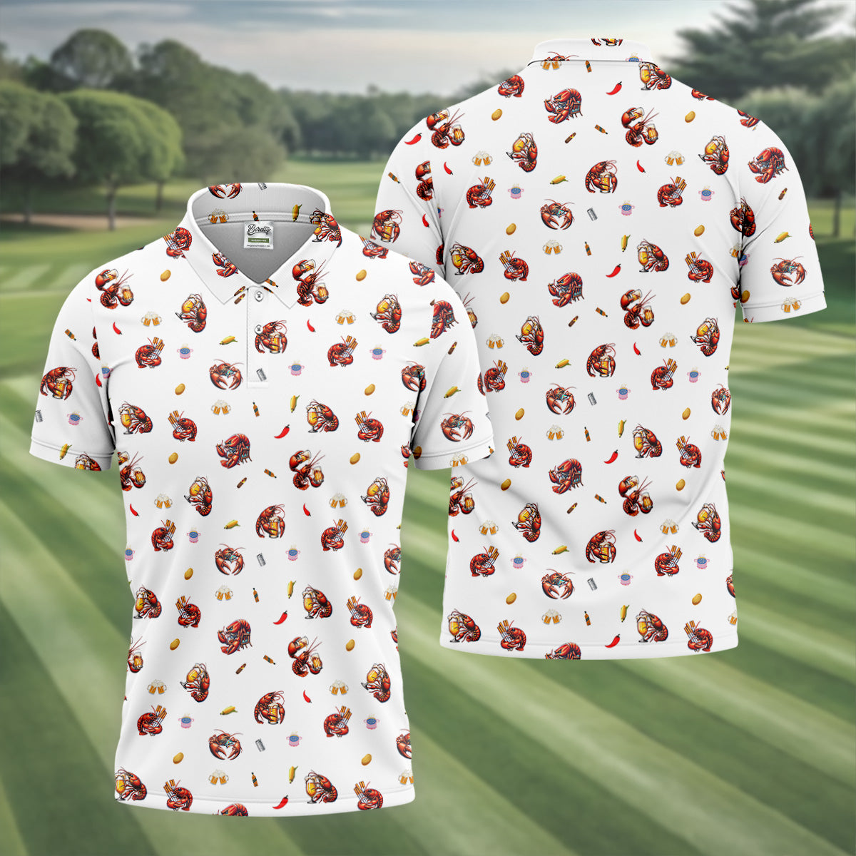 Lobster And Beer Golf Polo Shirt, Fun Golf Shirts For Men, Polo Shirts For Men, Golfing Apparel