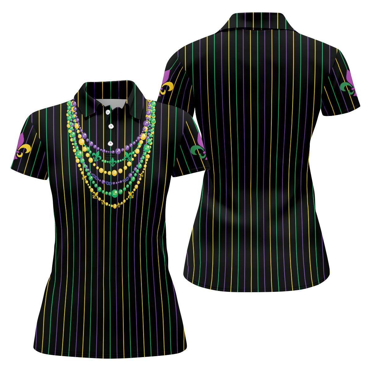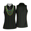 Mardi Gras Beads Necklaces Print Black Golf Shirt, Women's Golf Shirts, Ladies Golf Polos, Golf Shirt For Women