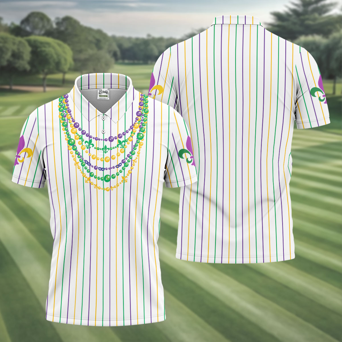 Whether you’re teeing off during Mardi Gras week, playing a themed tournament, or just looking for an excuse to bring festival vibes to the course — this shirt shows up ready to celebrate.