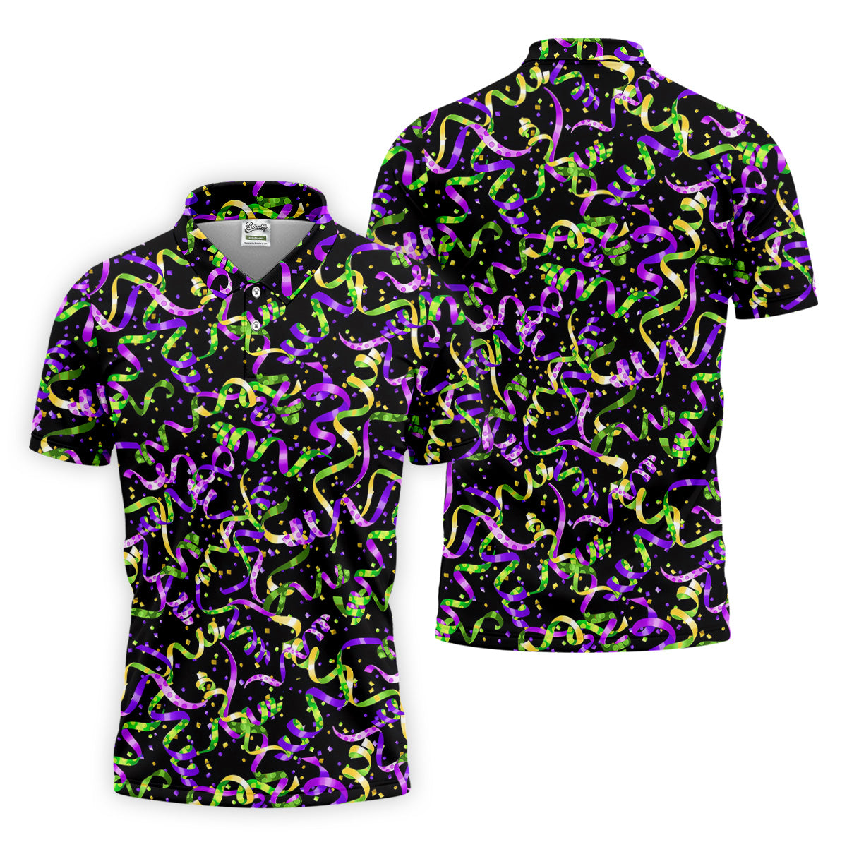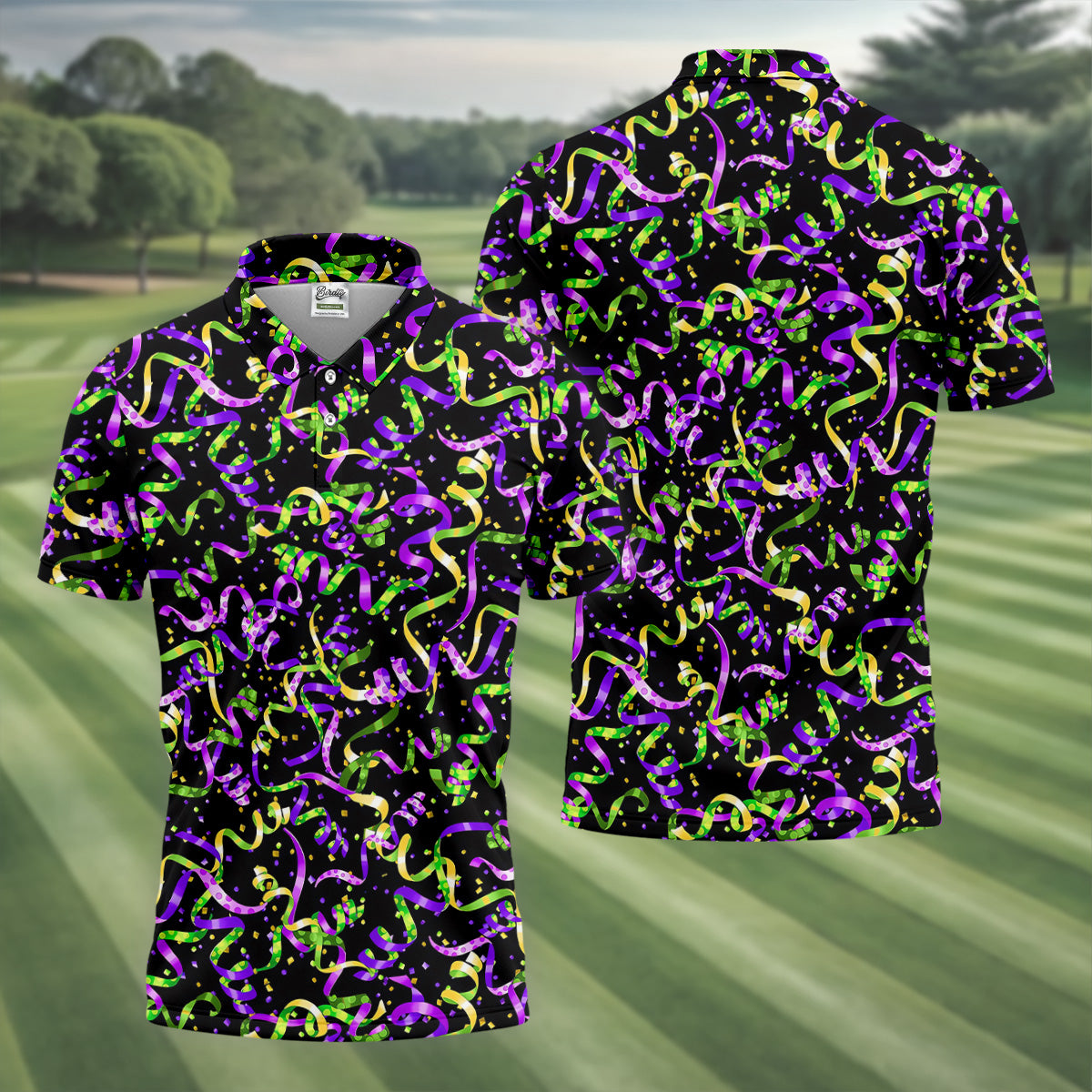 Mardi Gras Carnival Purple Green Gold Men's Golf Polo Shirts, Golf Gift For Men, Golf Shirts For Men