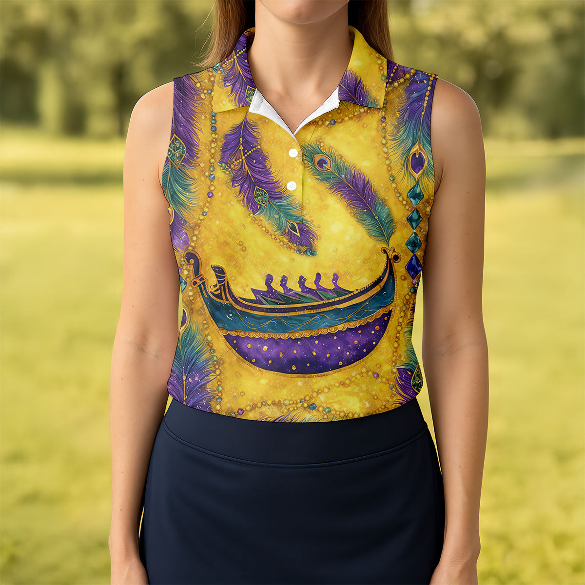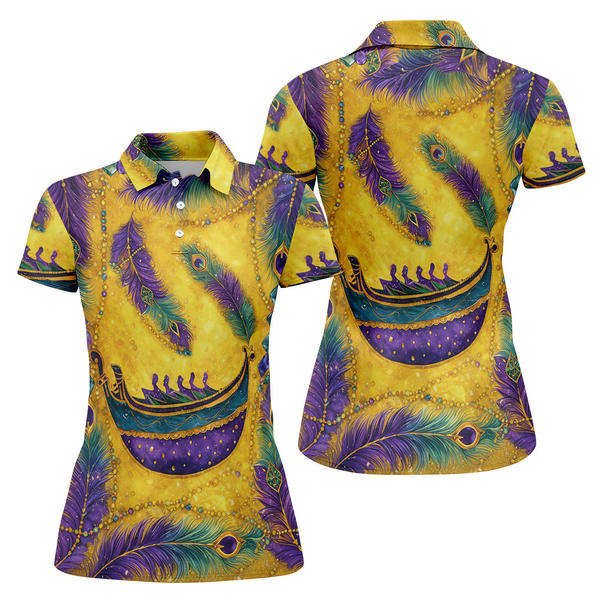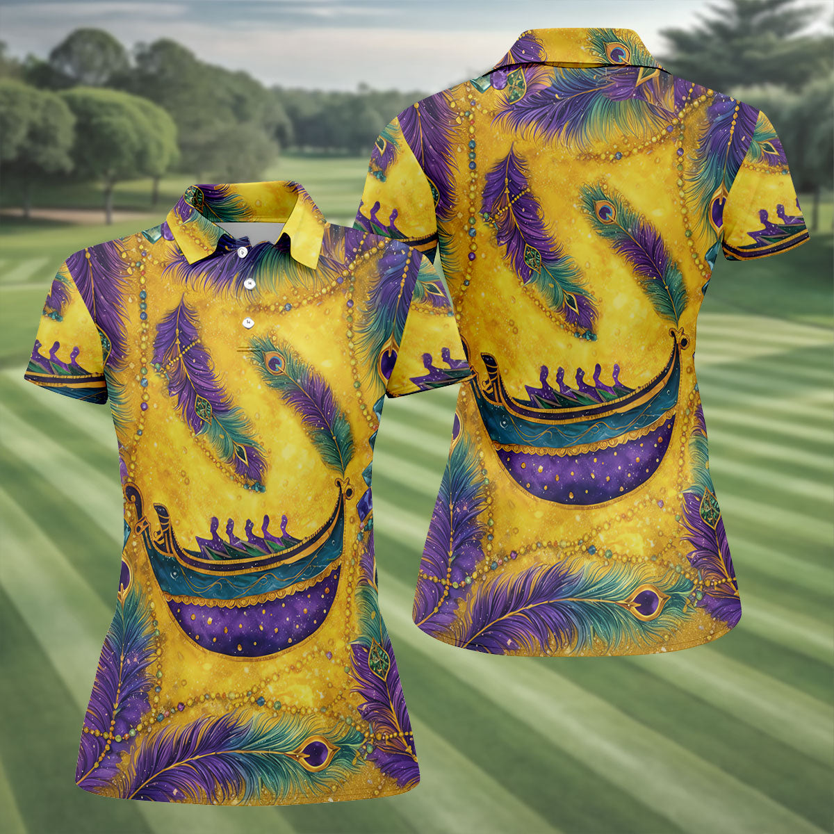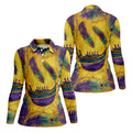 Mardi Gras Day Gradient Art Feather Print Retro Women's Golf Tops, Ladies Golf Shirts