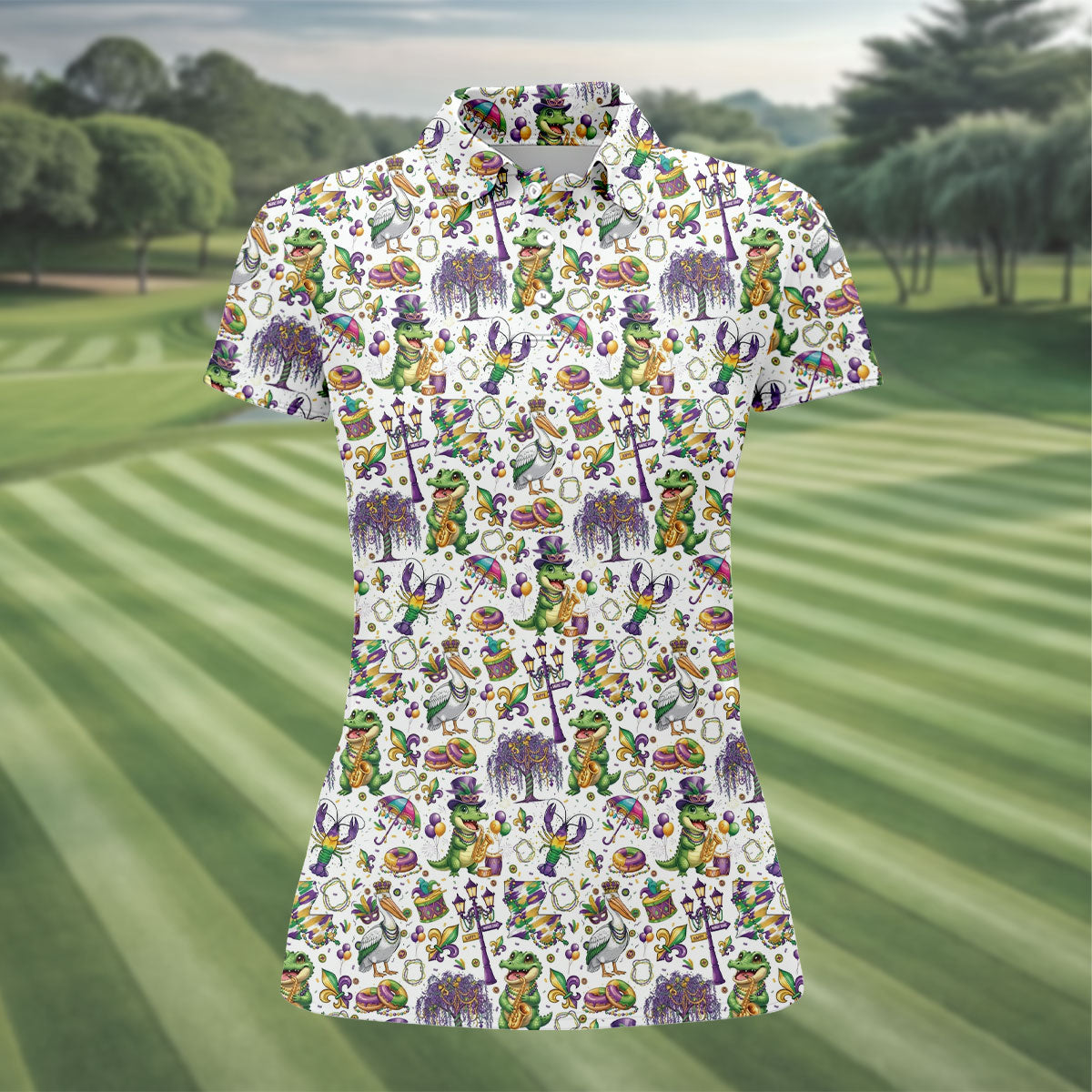 Whether you’re teeing off during Mardi Gras week, playing a themed tournament, or just looking for an excuse to bring festival vibes to the course — this shirt shows up ready to celebrate.