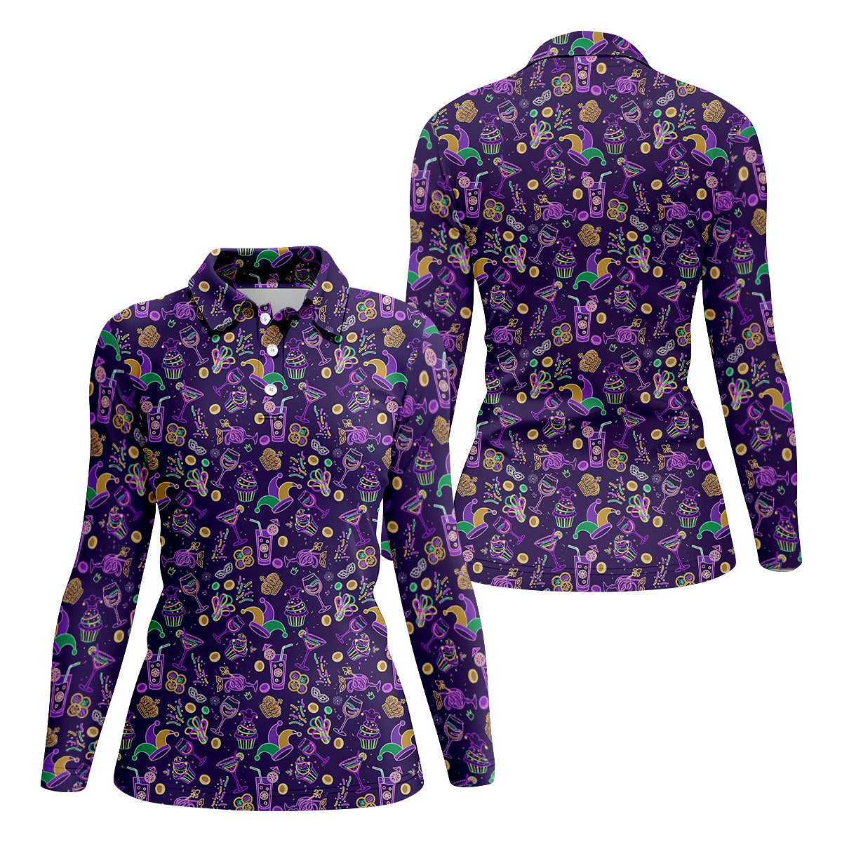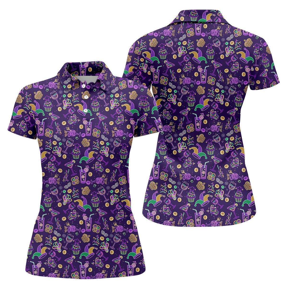 Mardi Gras Food Green Gold Purple Women's Golf Tops, Women's Golf Shirts, Ladies Golf Polos