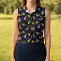 Mardi Gras Golf Sleeveless Polo Shirts Womens, Mardi Gras Black Golf Shirt, Ladies Golf Shirt