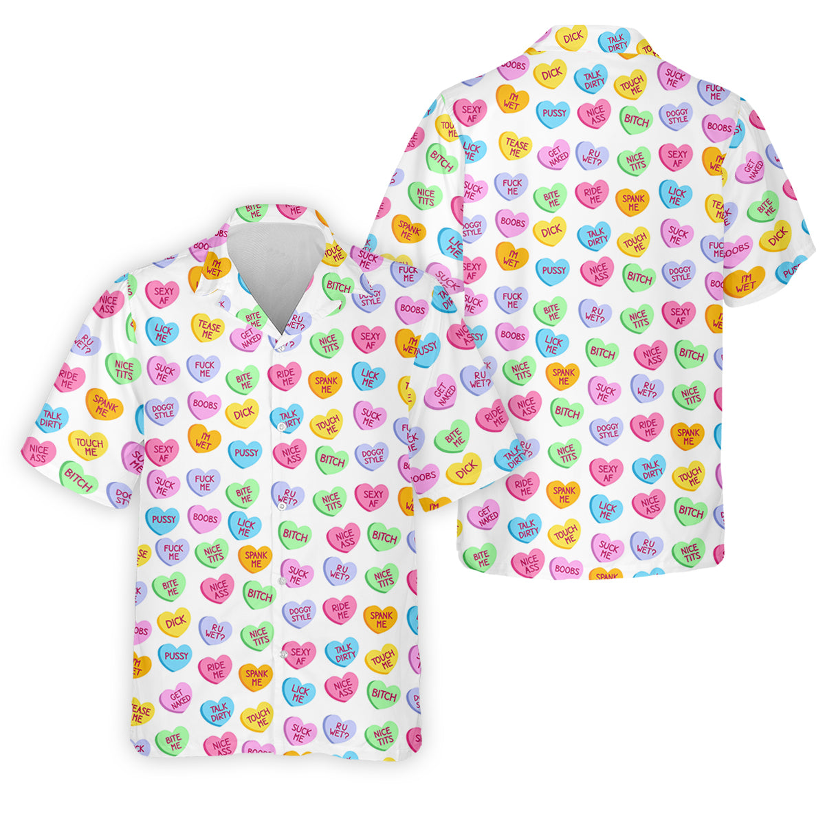 Naughty Conversation Hearts Fun Golf Shirts For Men, Valentines Golf Gift, Dirty Candy Heart Polo Shirts For Men