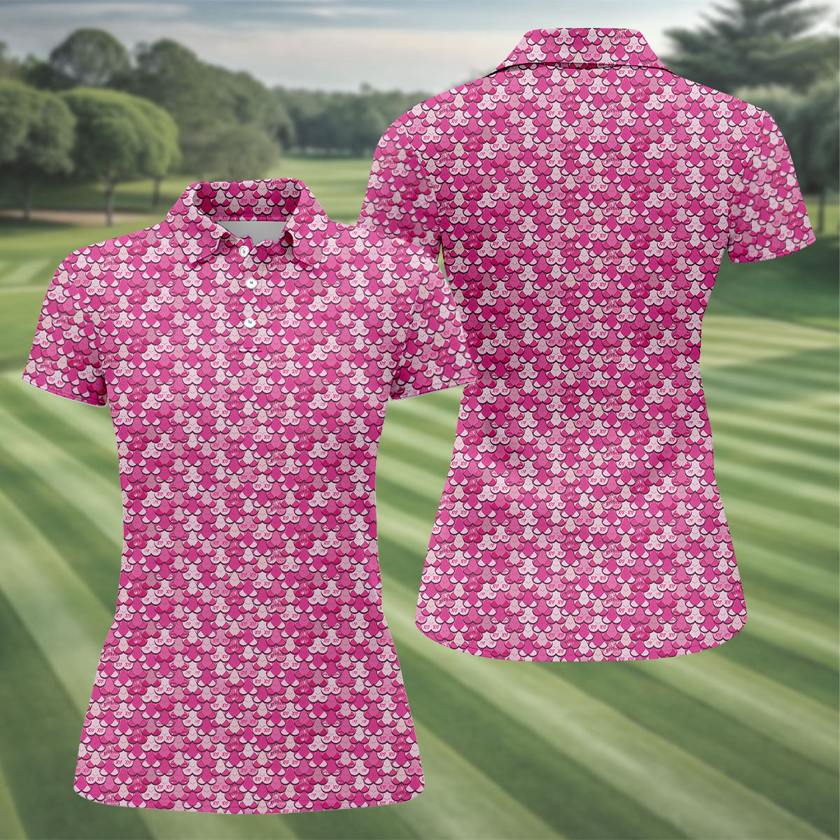 Naughty Fun XOXO Pink Women's Golf Tops, Valentines Golf Gift, Ladies Golf Polos, Golf Gifts For Women
