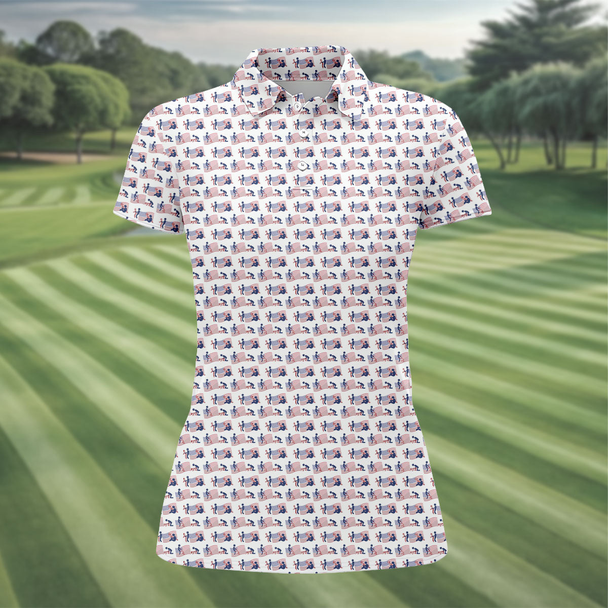 Naughty Position American Flag Pattern Patriotic Golf Shirts, 250th Anniversary Ladies Golf Shirts