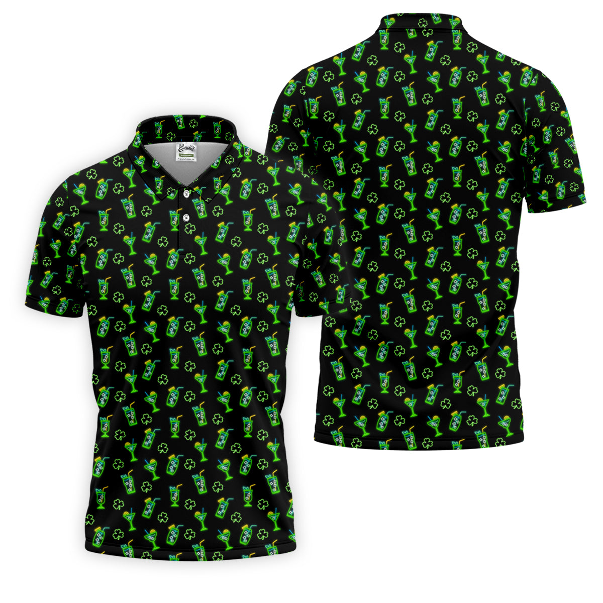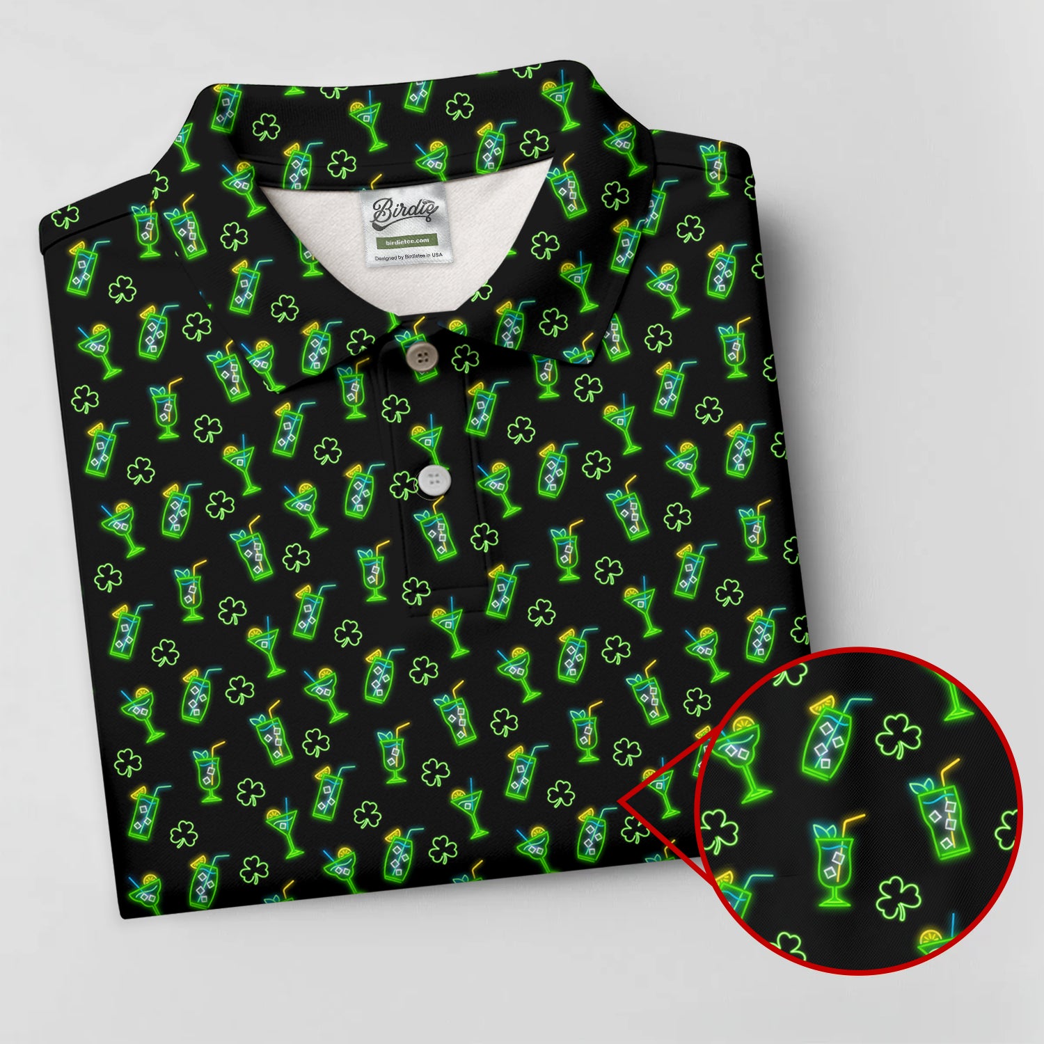 Neon Green Cocktails Three Leaf Clover St Patrick's Day Golf Shirt, Golf Gift For Men, Golf Shirts For Men