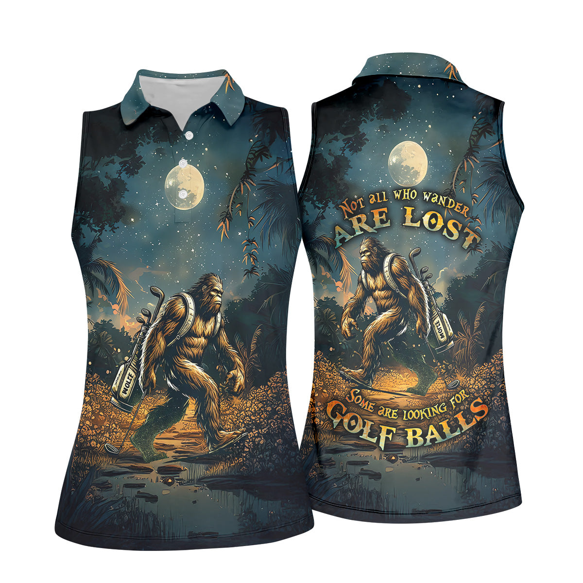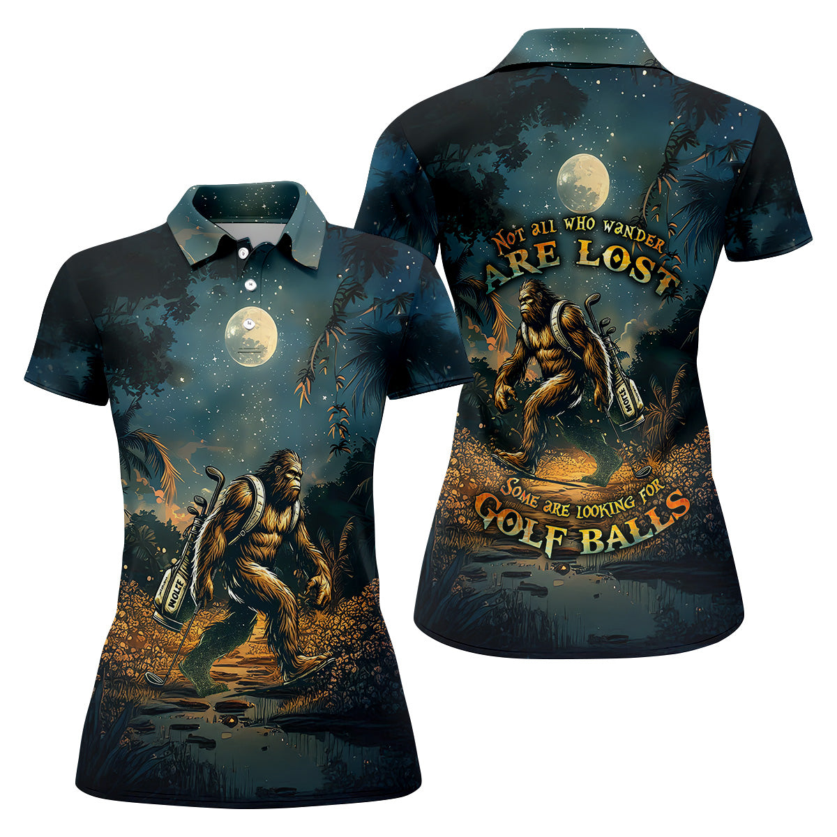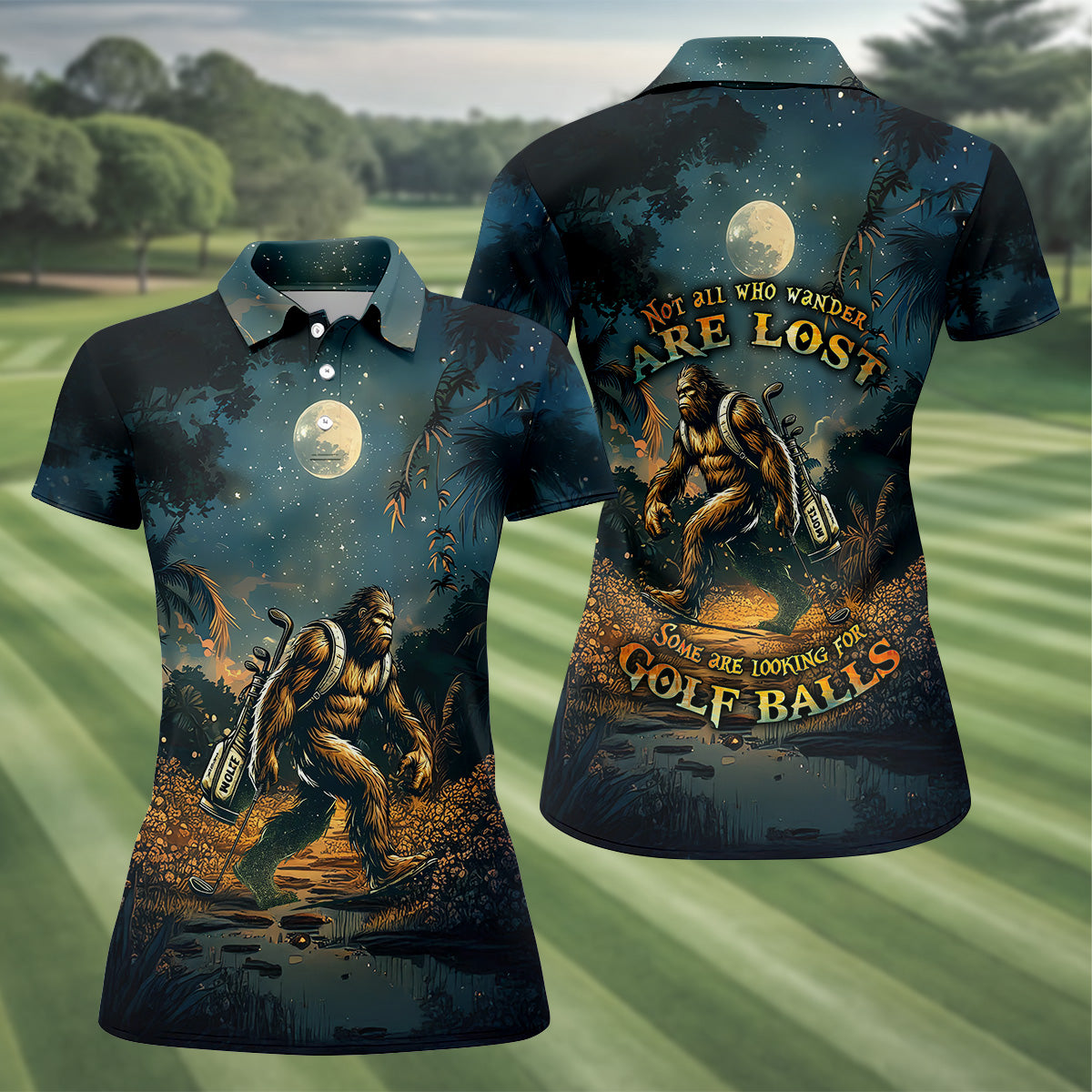 Not All Who Wander Are Lost Some Are Looking For Golf Balls Bigfoot Golf Shirt, Ladies Golf Shirts