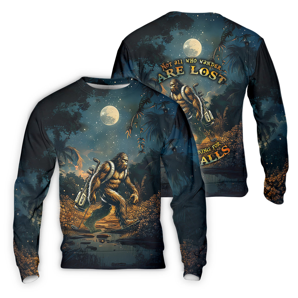 Meet the Not All Who Wander Are Lost Some Are Looking For Golf Balls Bigfoot Golf Shirt, Mens Golf Polo Shirts – a shirt so bold it makes argyle cry in the corner. Designed for golfers who'd rather make a fashion statement than follow dress codes, this polo is your ticket to turning heads, raising eyebrows, and maybe distracting your buddies just enough to win a few holes. (We’re not saying it’s cheating... we’re saying it’s strategy.)