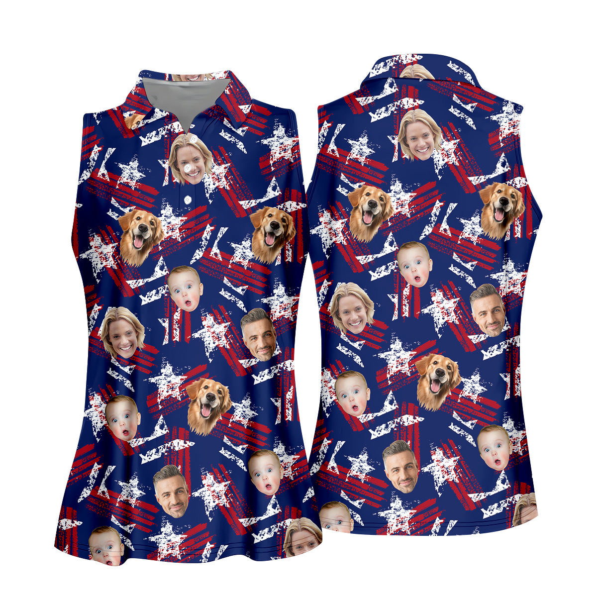 Custom Face Shirt, Patriotic Golf Polos, Golf Tops For Women, USA Golf Polo, Women's Golf Polo Shirt