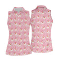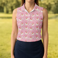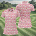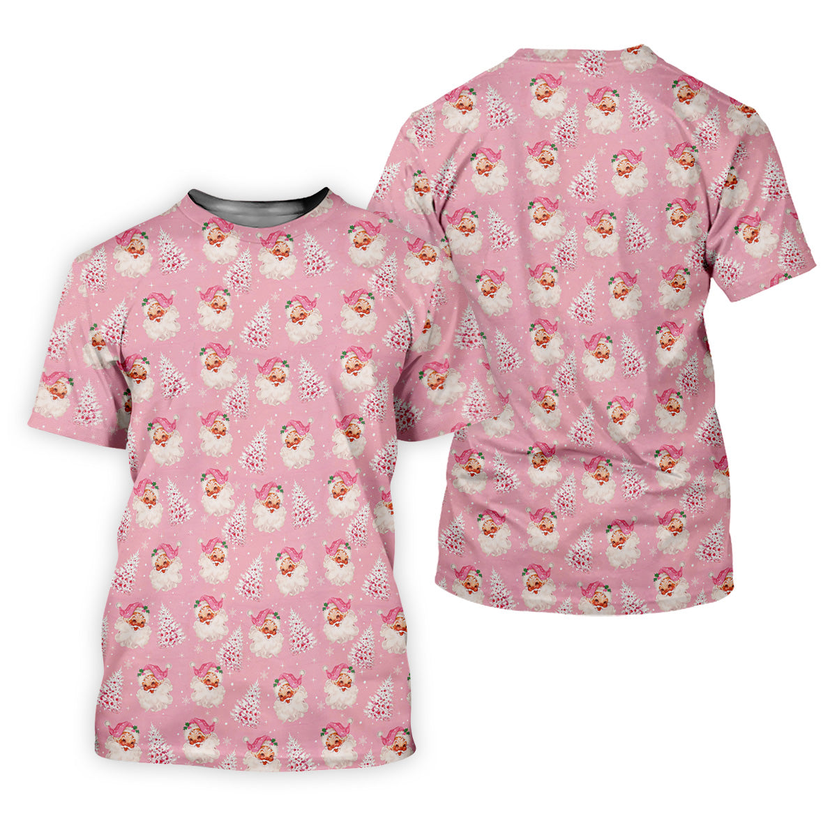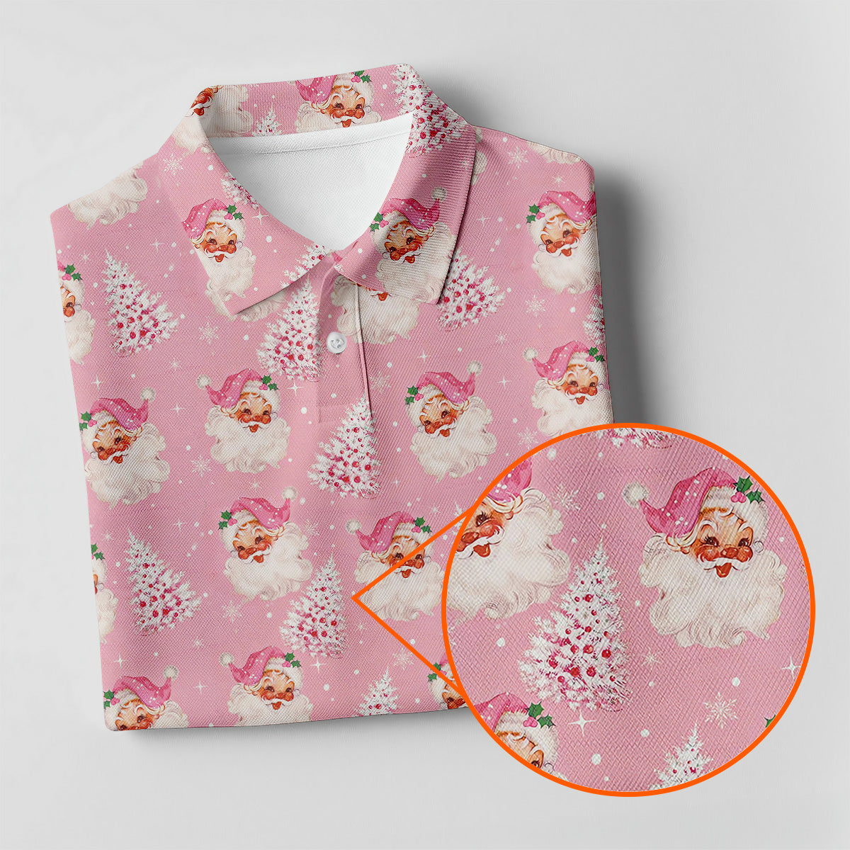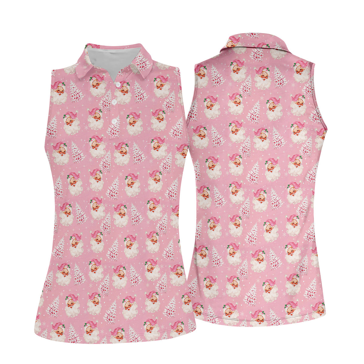 Pink Xmas Tree Santa Claus Pattern Christmas Golf Shirt, Women's Golf Tops, Golf Gift For Ladies