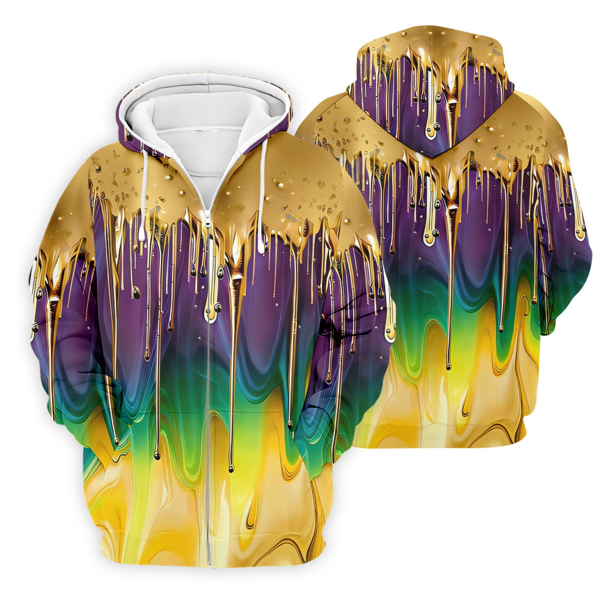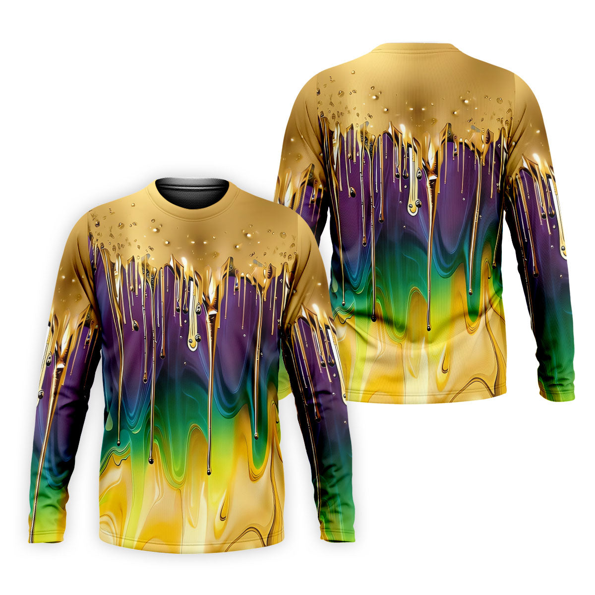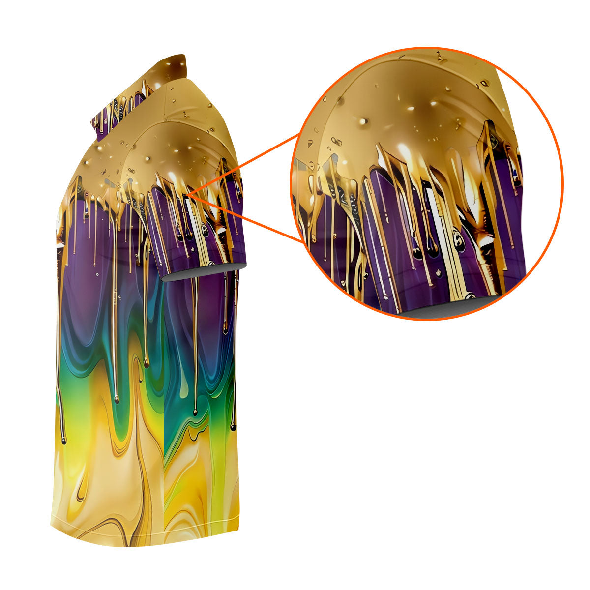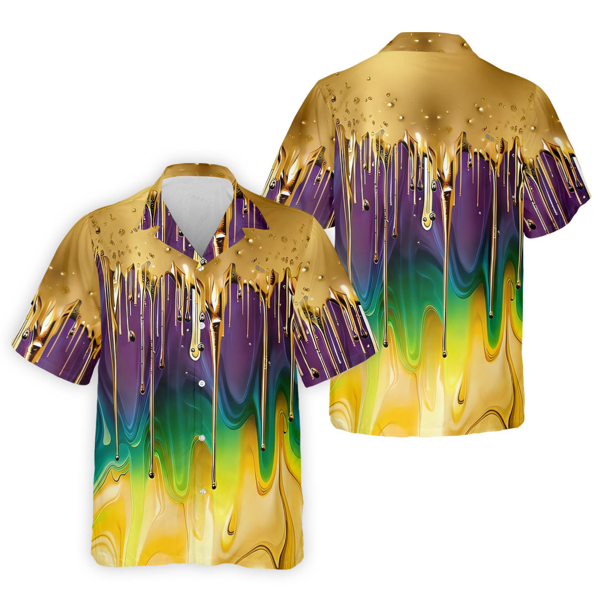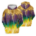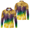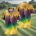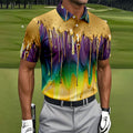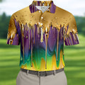 Purple Green Gold Dripping Effect Mardi Gras Golf Shirt, Polo Shirts For Men, Golf Shirts For Men