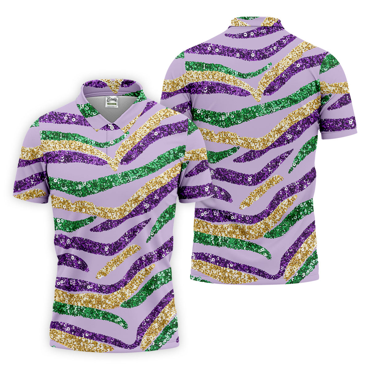 Purple Green Gold Sequin Pattern Light Purple Mardi Gras Golf Shirt, Polo Shirts For Men, Golf Shirts For Men