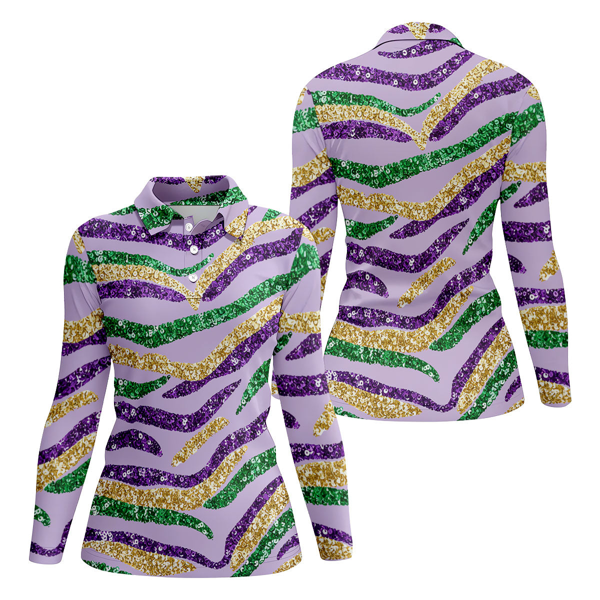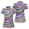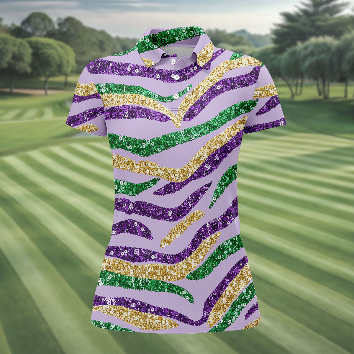 Purple Green Gold Sequin Pattern Light Purple Mardi Gras Golf Shirt, Women's Golf Tops, Ladies Golf Shirts