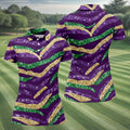 Purple Green Gold Sequin Pattern Purple Golf Shirt, Mardi Gras Golf Shirt, Women's Golf Tops, Ladies Golf Shirts