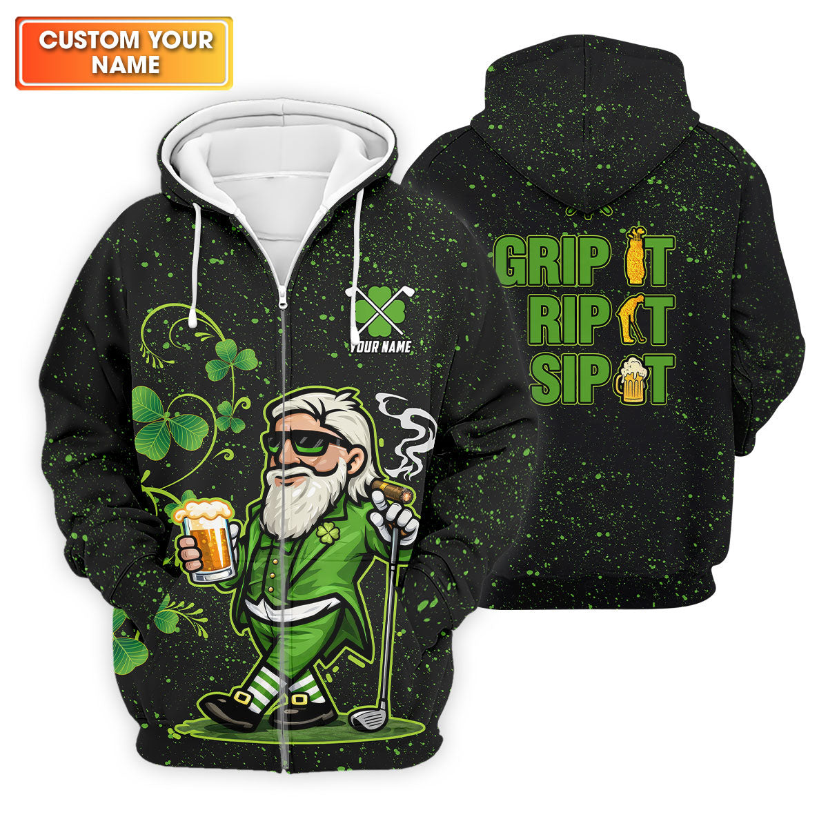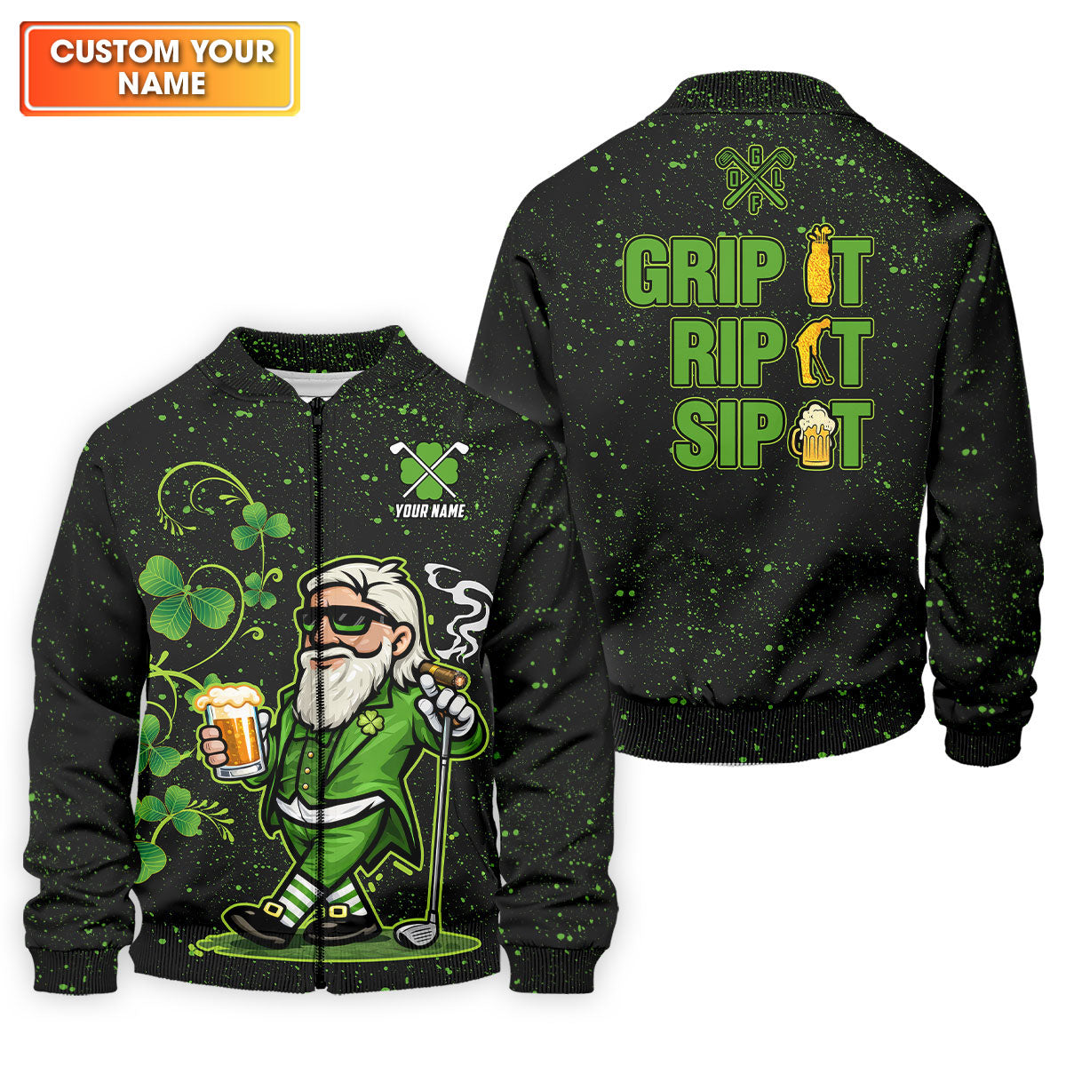 Grip It Rip It Sip It St Patrick's Day Leprechaun Golf And Beer Shamrock Golf Shirt, Golf Shirts For Men
