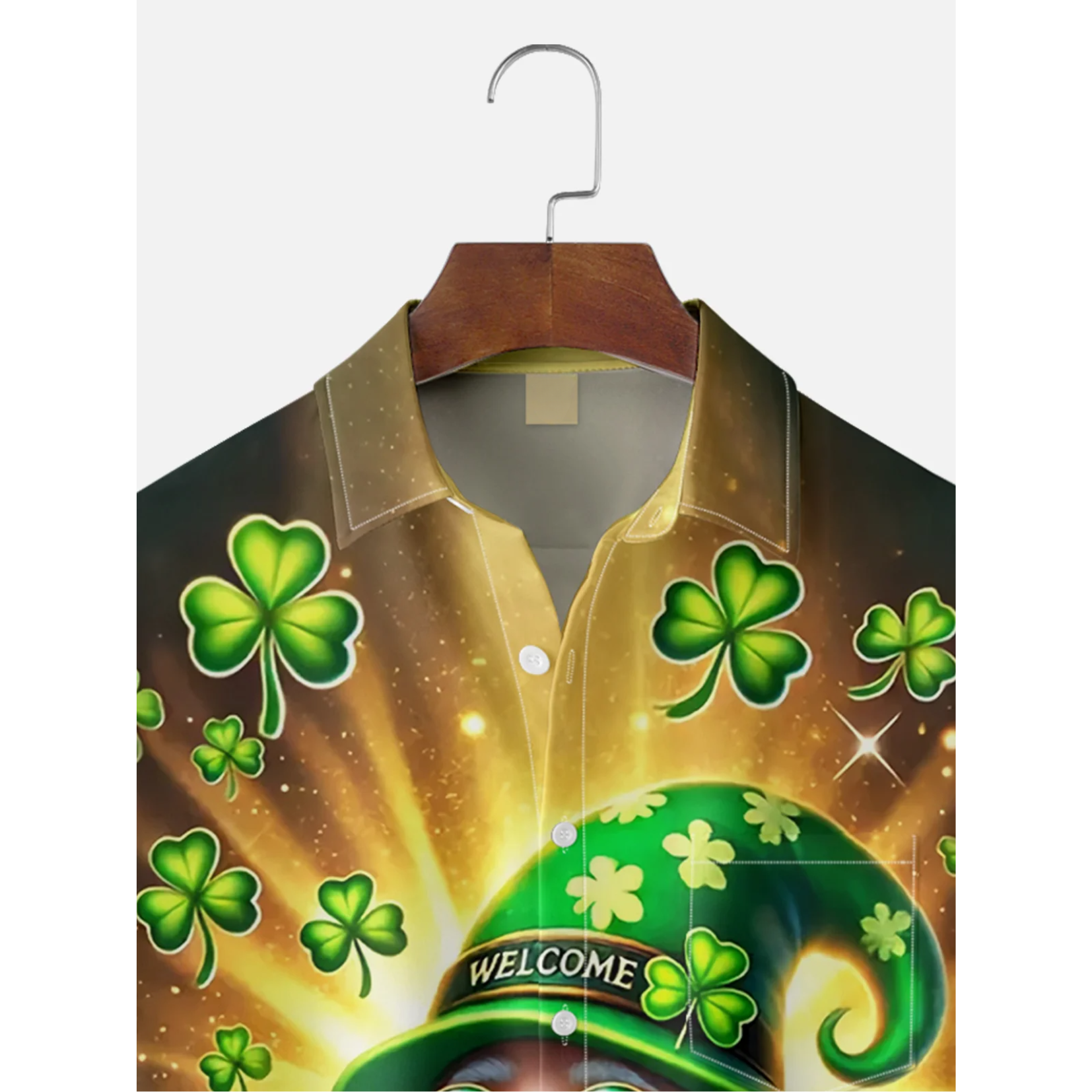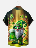 St. Patrick's Day Shamrock Gnome Beer Hawaiian Golf Shirt, Shamrock Golf Shirts, Men's Golf Shirt