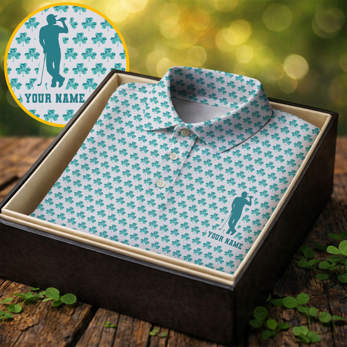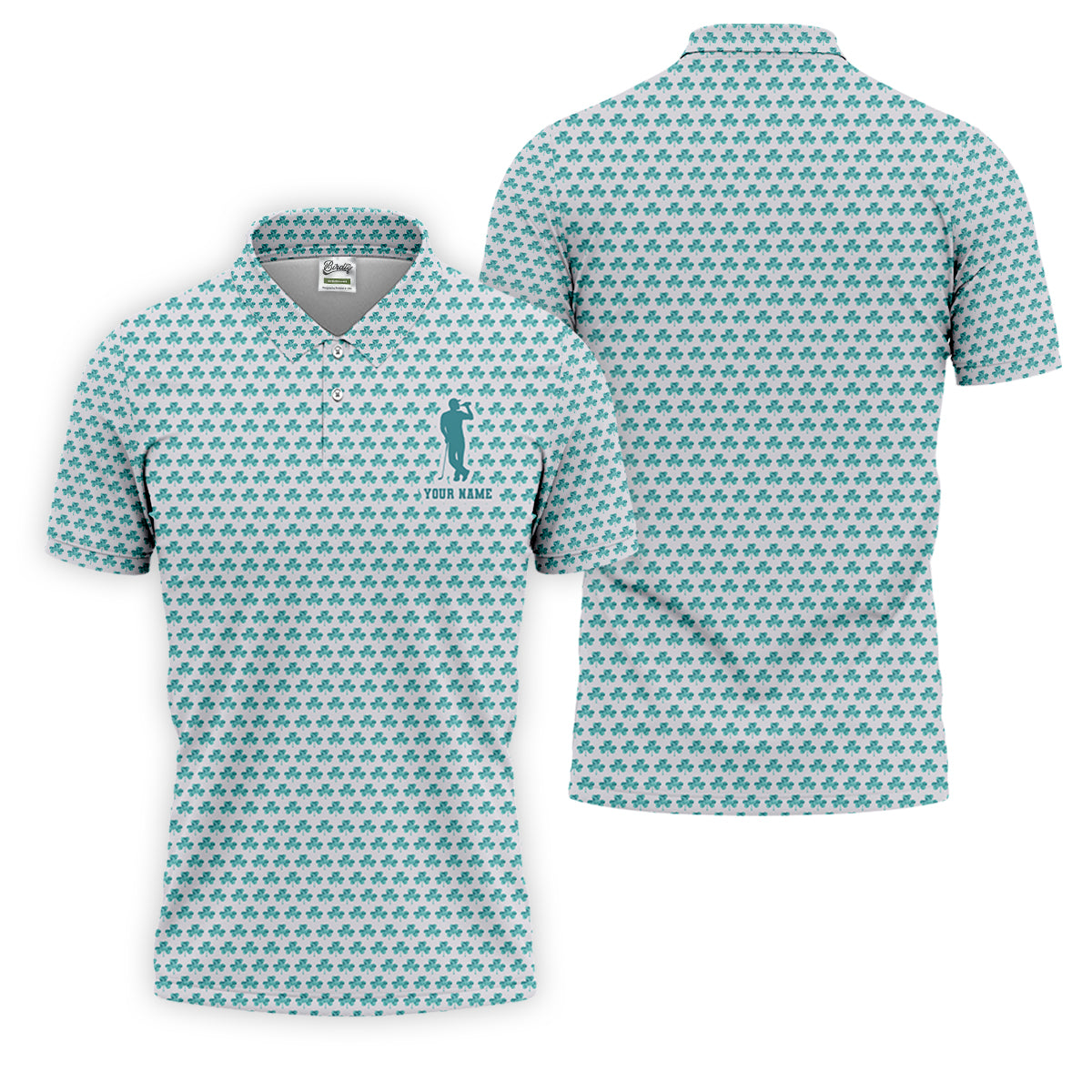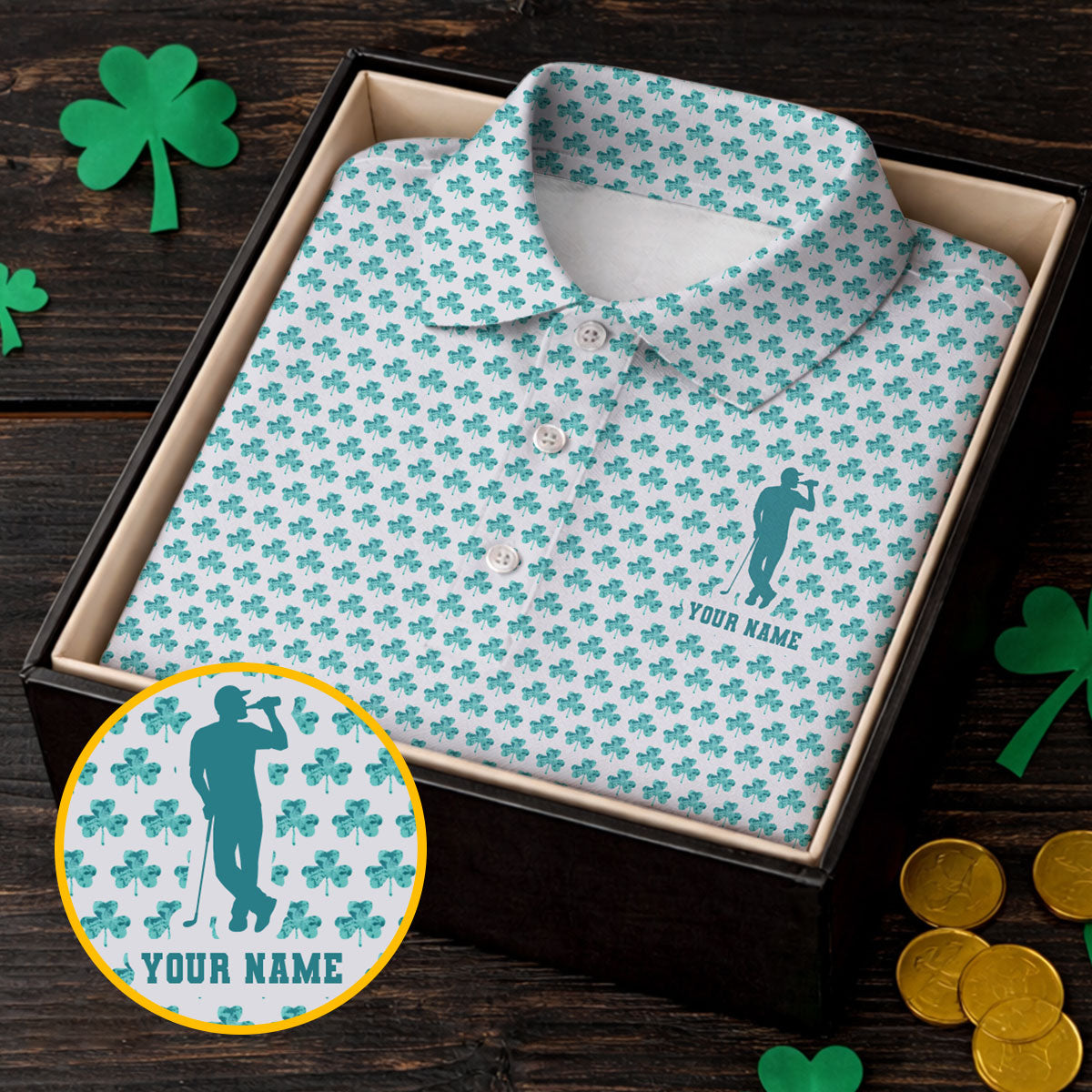 St Patrick's Day Shamrock Golf And Beer Blue And White Golf Shirt, Polo Shirts For Men, Golf Shirts For Men