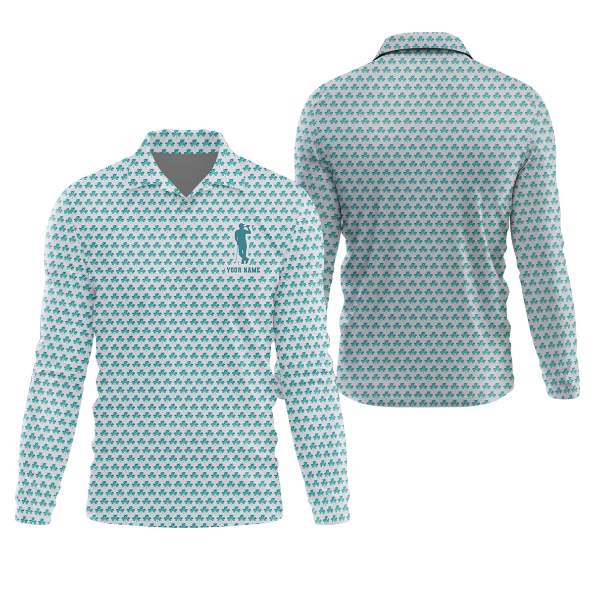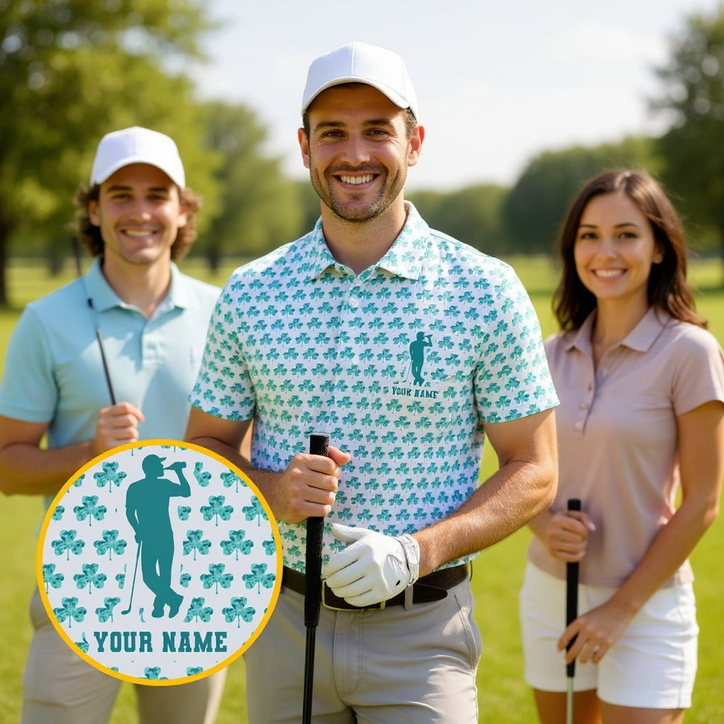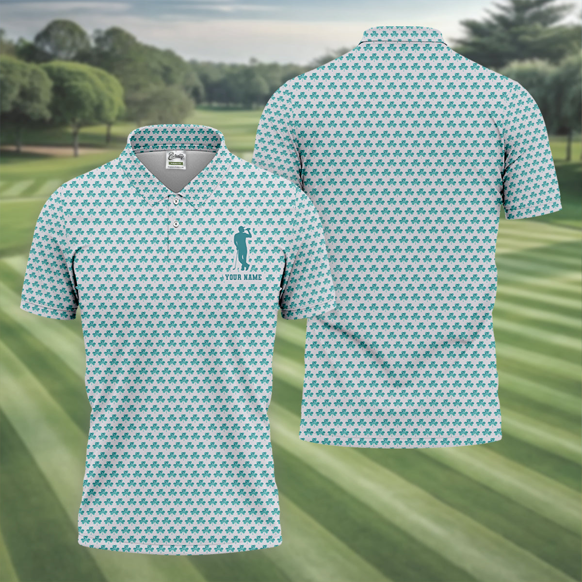 St Patrick's Day Shamrock Golf And Beer Blue And White Golf Shirt, Polo Shirts For Men, Golf Shirts For Men