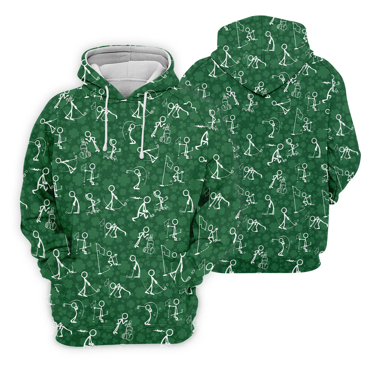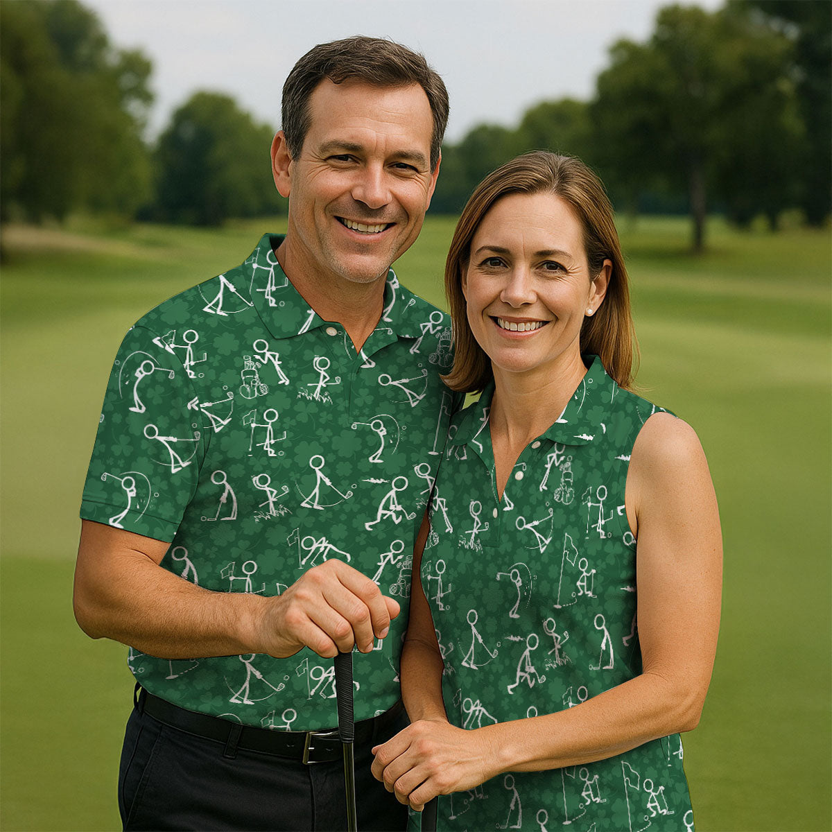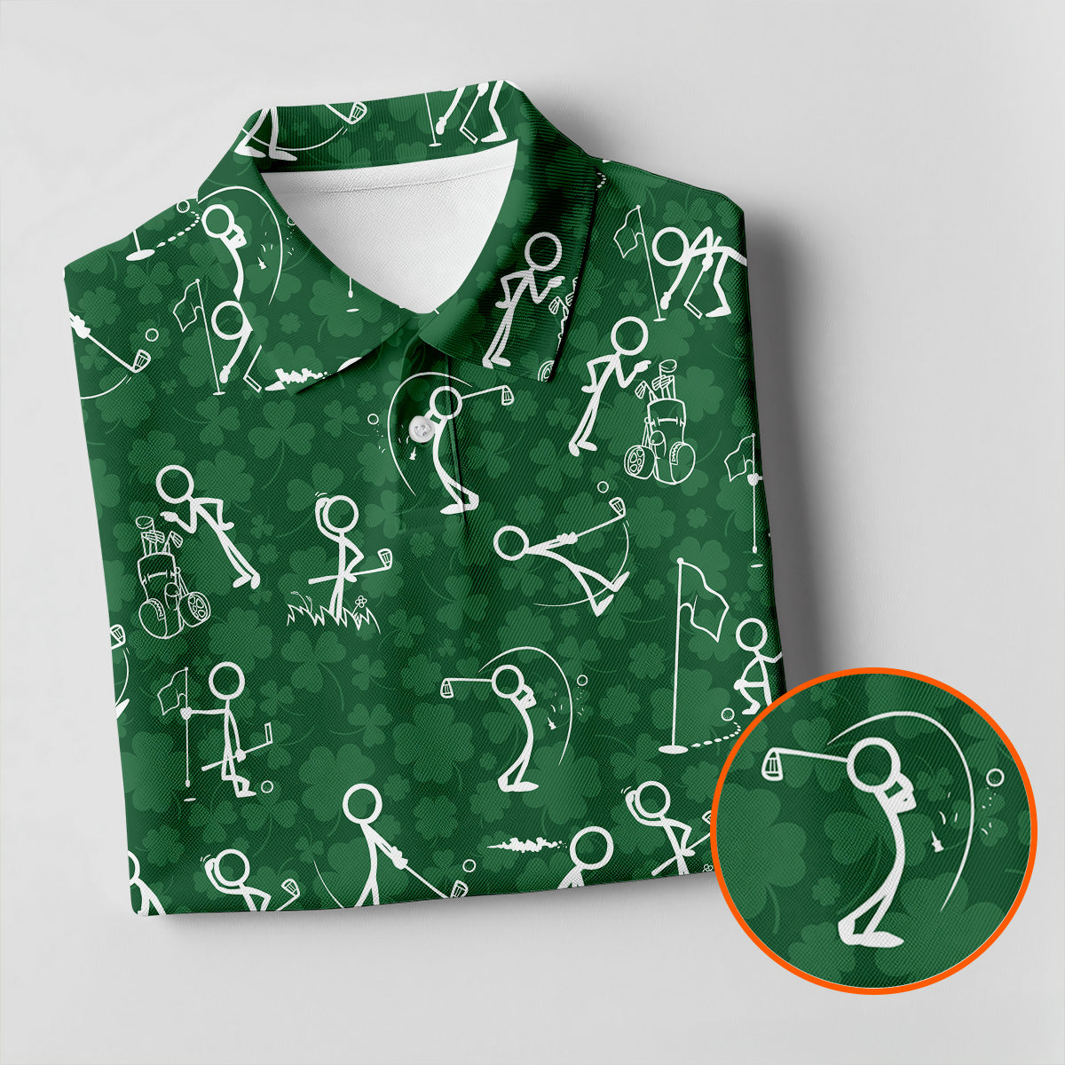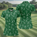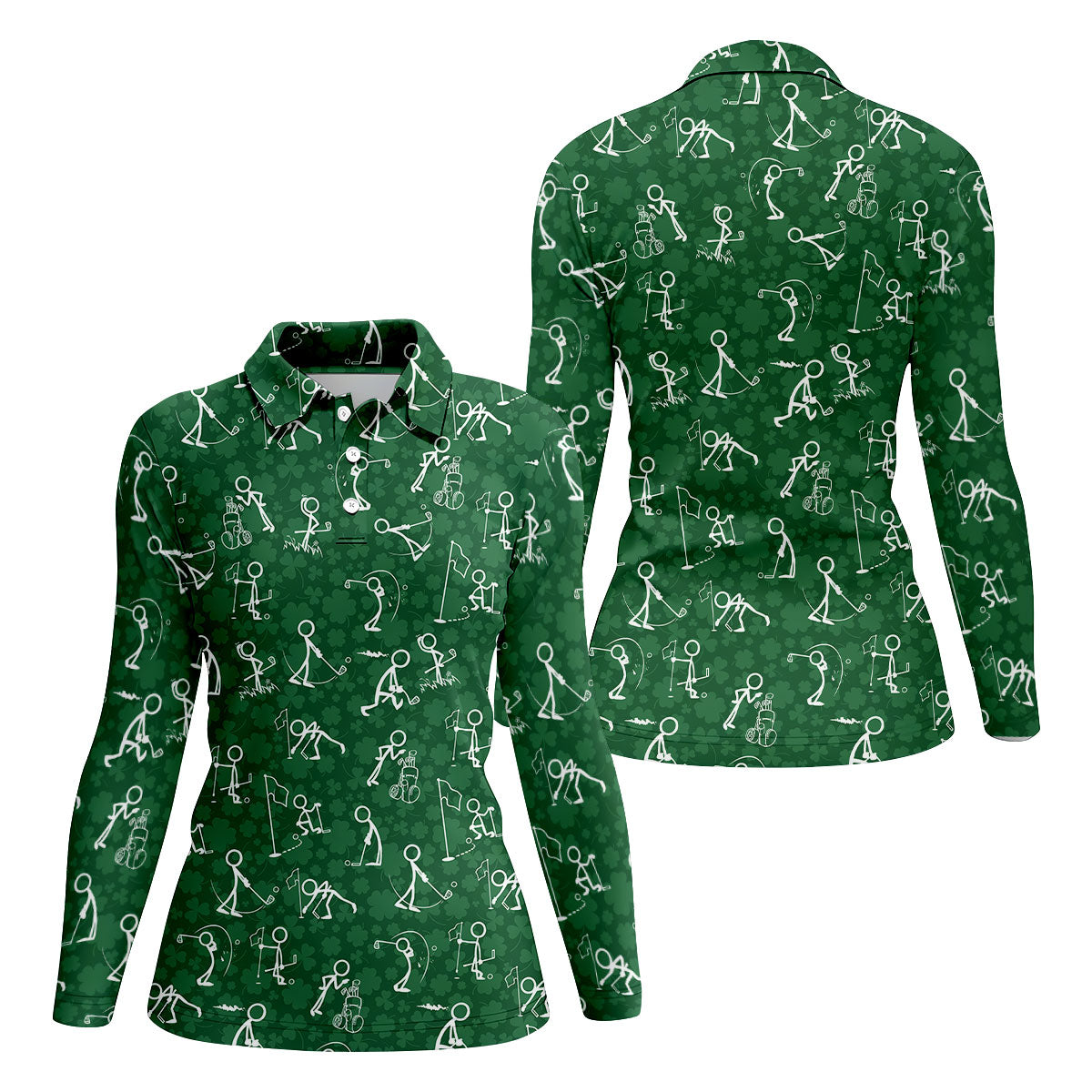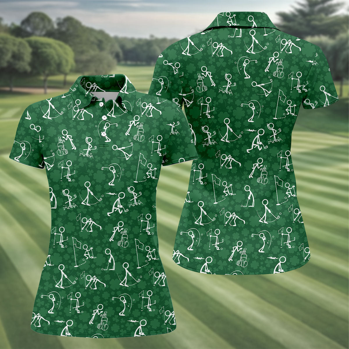 Stick Figure Golf Pose Shamrock Golf Shirt, St Patrick's Day Ladies Golf Polos, Golf Shirt For Women