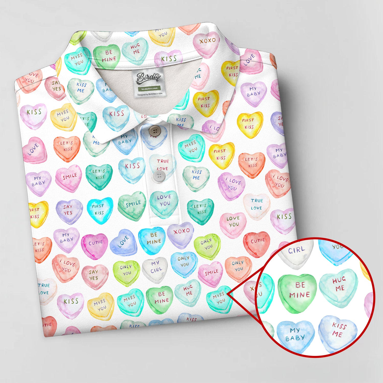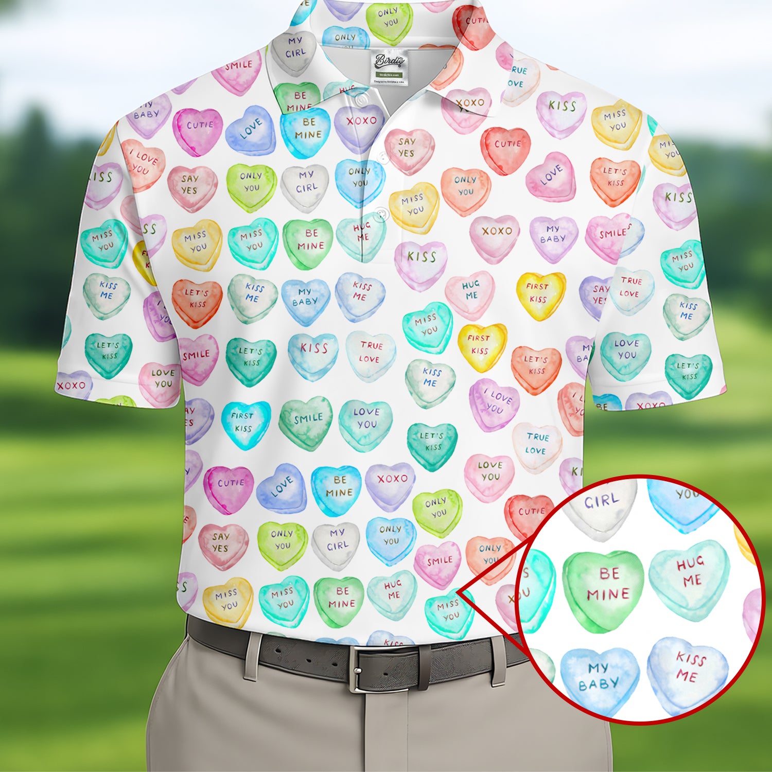 Sweet Words Watercolor Heart Golf Tops For Men, Valentines Golf Gift, Polo Shirts For Men