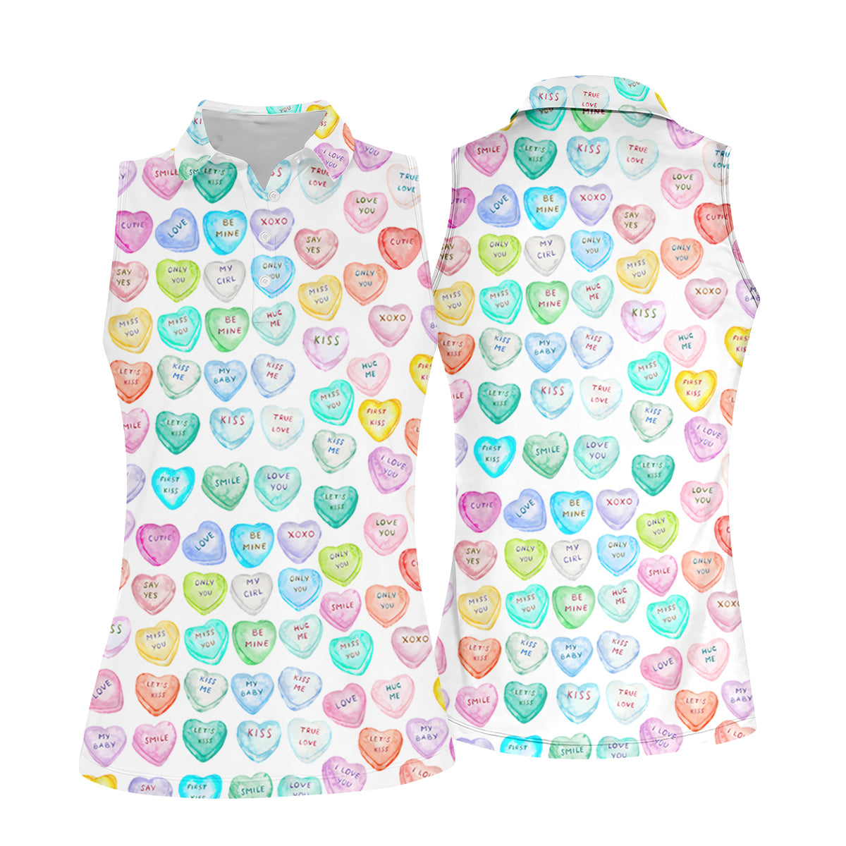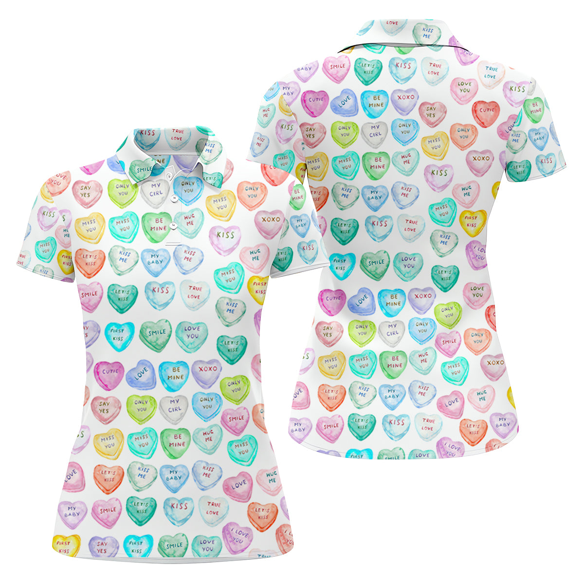 Sweet Words Watercolor Heart Women Golf Top, Valentines Golf Gift, Ladies Golf Polos
