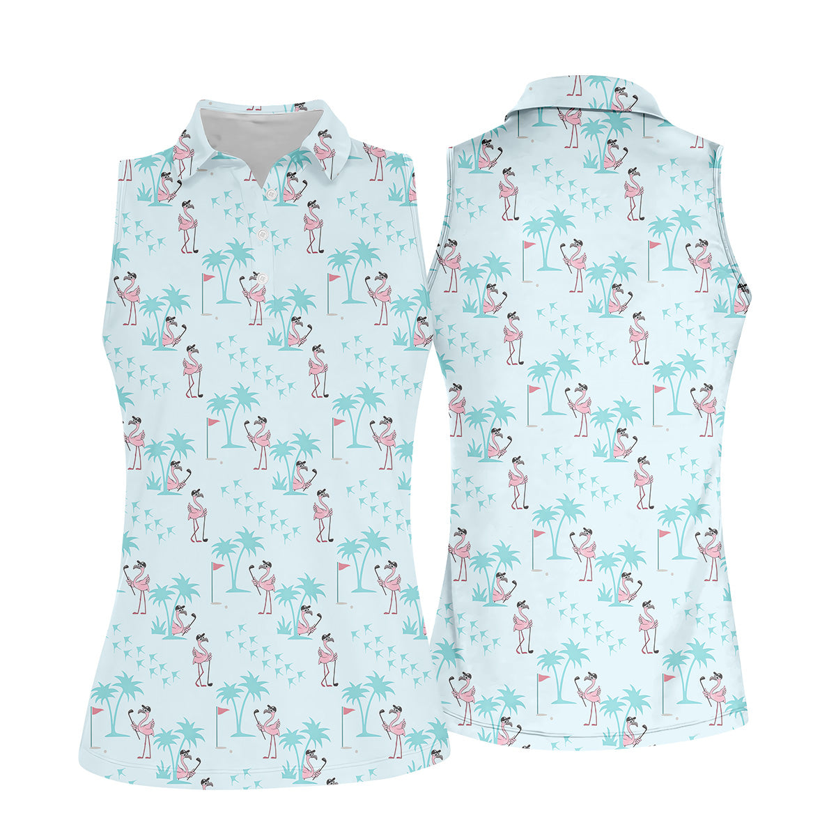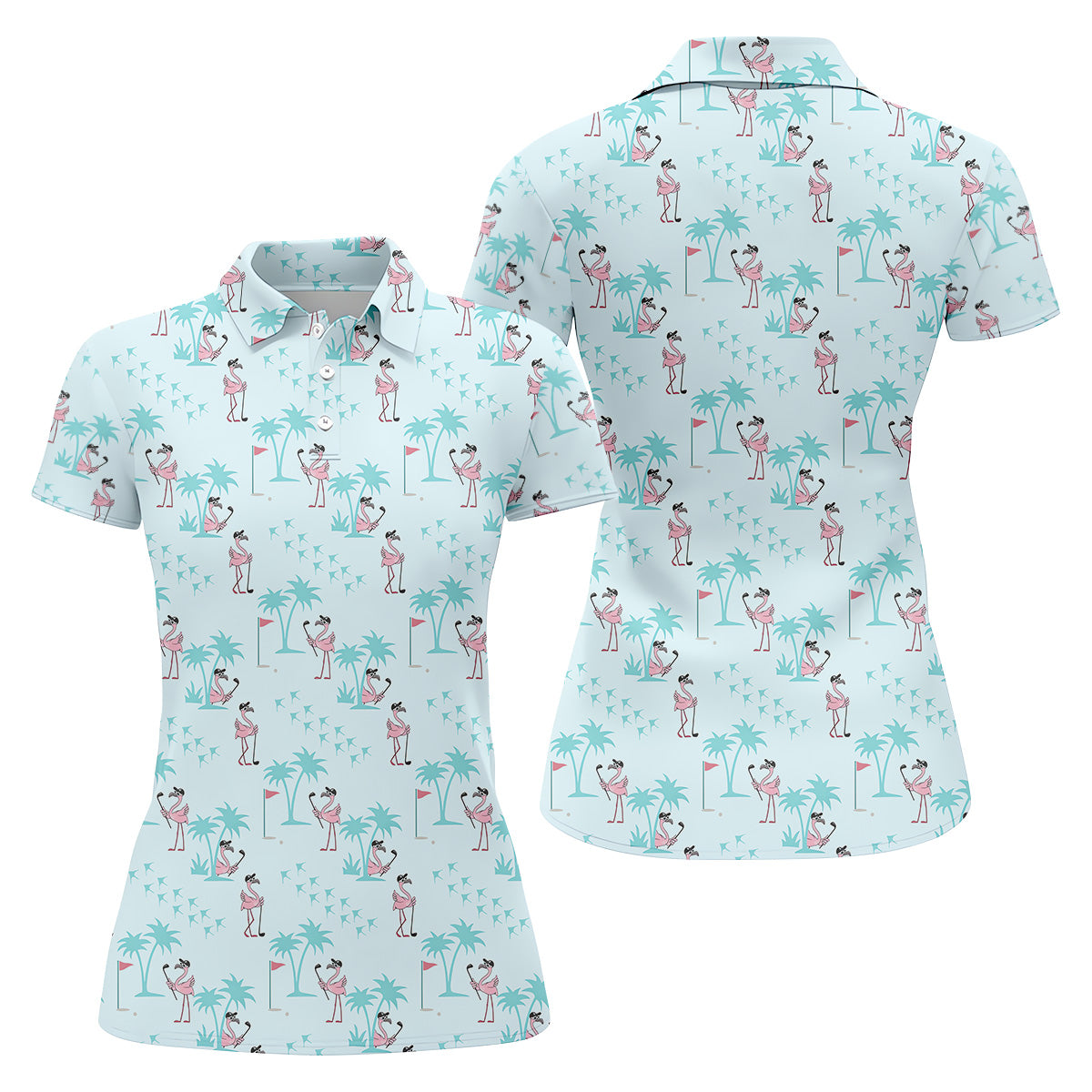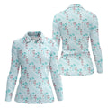 Tropical Flamingo Blue Golf Shirt, Women Golf Top, Ladies Golf Polos, Golfing Apparel