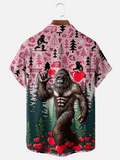 Valentine's Day Bigfoot Fun Heart Hawaiian Golf Shirt, Valentine Golf Gift, Tropical Vibe Funny Golf Shirt