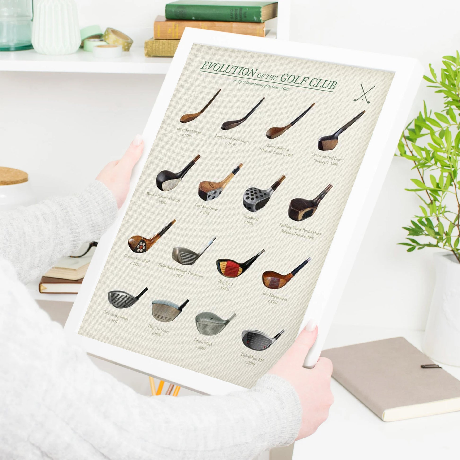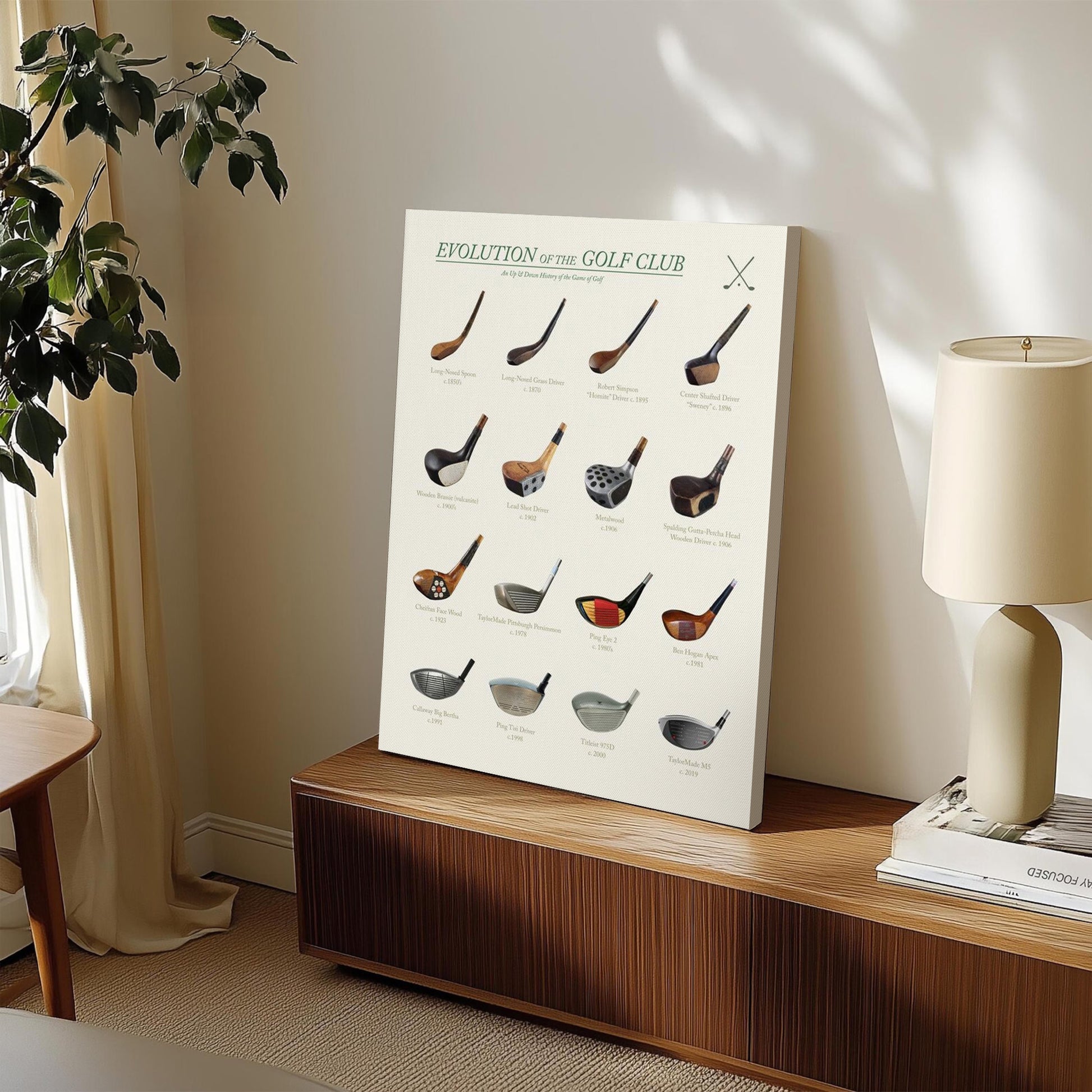 Vintage Evolution Of The Golf Club Canvas, Golf Wall Art, Gift For Golfer