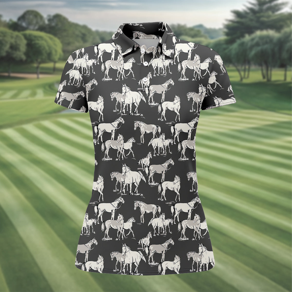 Wild Horse Seamless Pattern Women Golf Top, Golf Shirt For Women, Ladies Golf Polos
